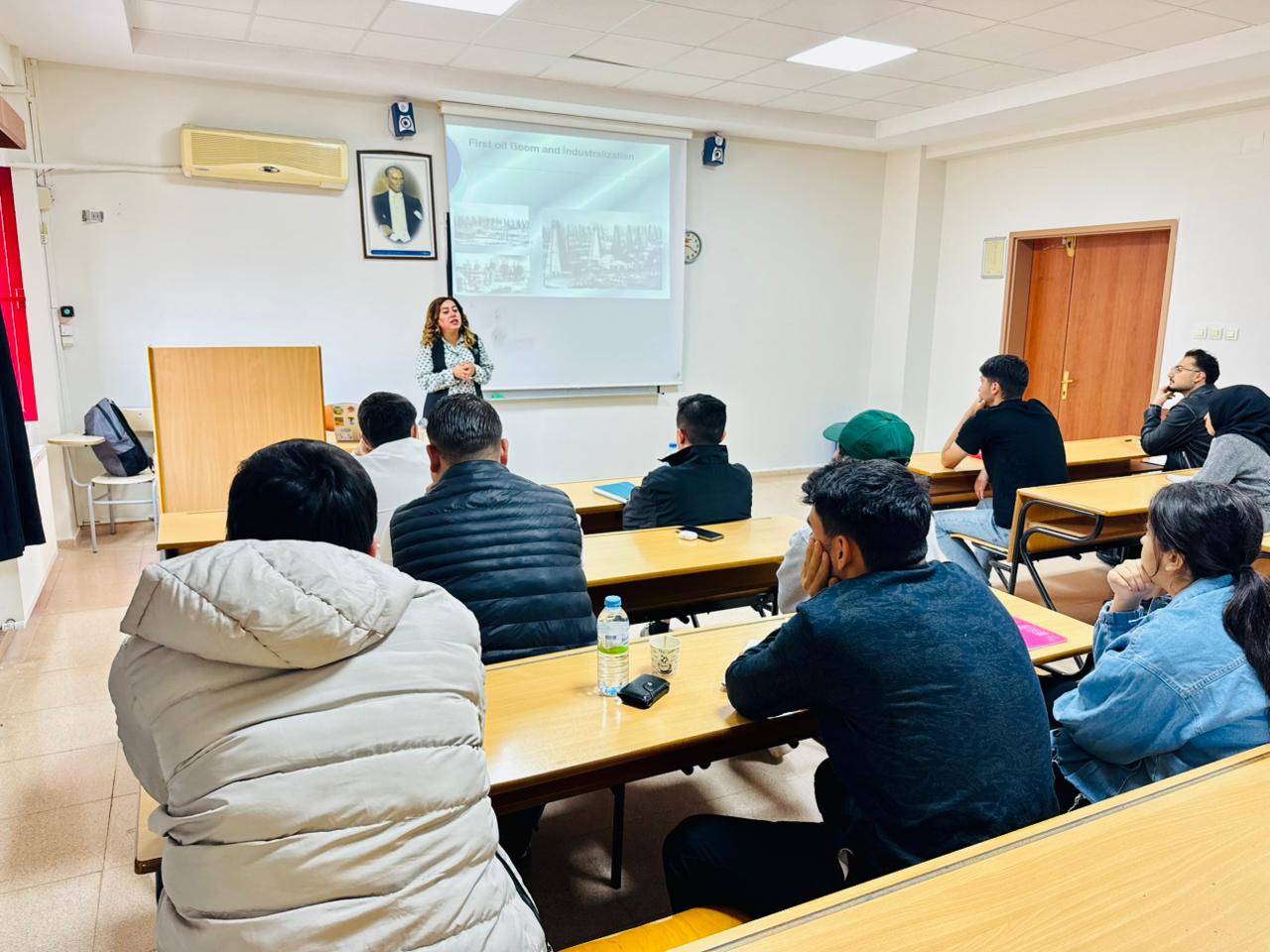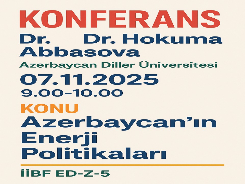 Azerbaycan Diller Üniversitesi öğretim üyesi Prof. Dr. Höküme Abbasova, bölümümüz öğretim üyesi Dr. Öğr. Üyesi Hacı Mehmet Boyraz ile birlikte "Azerbaycan'ın Enerji Politikaları" konulu konferansı düzenledi. Abbasova; enerji jeopolitiği, Türkiye-Azerbaycan stratejik ilişkileri ve Azerbaycan’ın dış politikasına ilişkin öğrencilerimizi bilgilendirdi.