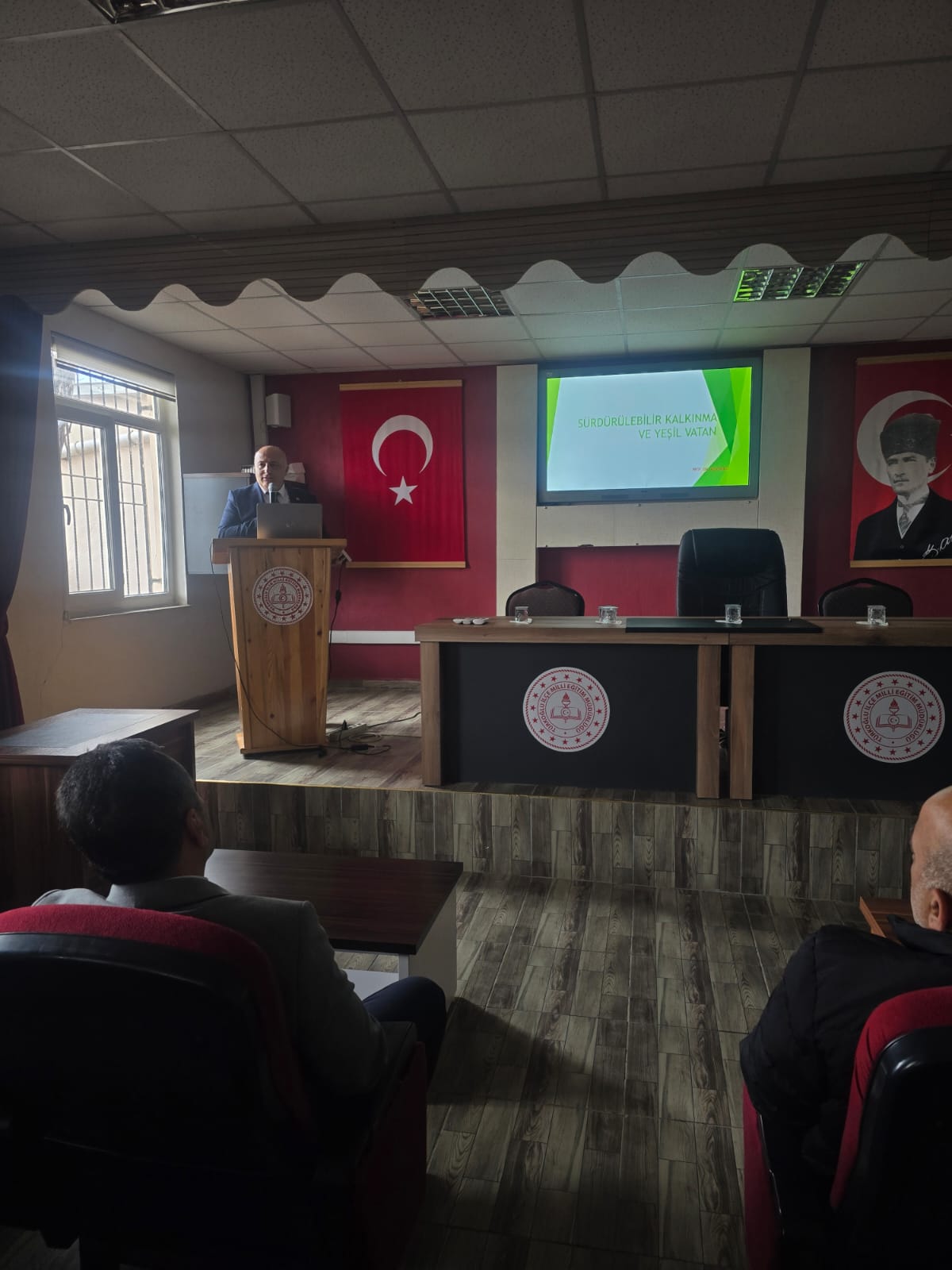 Kamu Yönetimi Bölüm Başkanı Prof. Dr. Aziz Belli, Türkoğlu Adnan Menderes Anadolu Lisesi'nde ''Yeşil Vatan- Benim Okulum Geleceğe Çare'' konulu eğitim gerçekleştirmiştir.