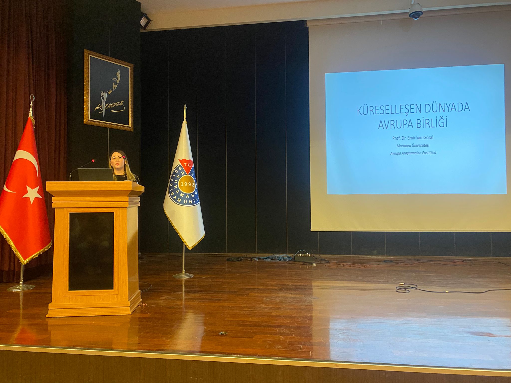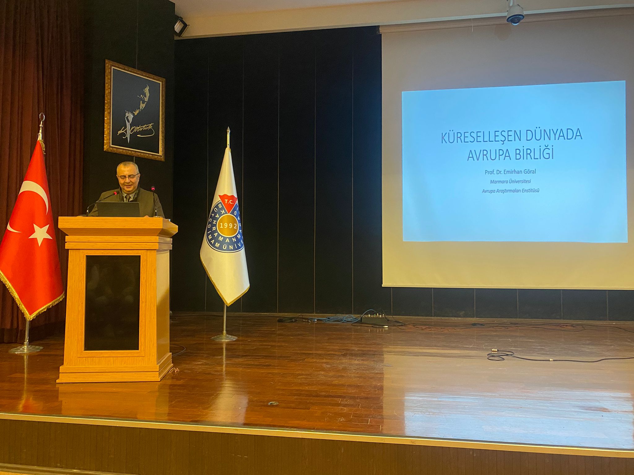 Siyaset Bilimi ve Uluslararası İlişkiler Bölümü tarafından yürütülen “Küreselleşen Dünyada Avrupa Birliği” konulu seminer düzenlendi. Etkinlik, Bölüm Başkanı Dr. Öğr. Üyesi Fatmanur Kaçar Aşcı’nın açılış konuşması ve İktisadi ve İdari Bilimler Fakültesi Dekanı Prof. Dr. Ali Haluk Pınar’ın Avrupa Birliği (AB) ile ilişkiler üzerine yaptığı giriş konuşmasıyla başladı. Seminer, konuk öğretim üyesi ve Marmara Üniversitesi Avrupa Araştırmaları Enstitüsü Müdürü Prof. Dr. Emirhan Gönal’ın sunumu ile öğrencilerden gelen sorular doğrultusunda devam etti. Seminer sonunda konuk öğretim üyesine teşekkür belgesi takdim edildi. Seminere ayrıca bölüm öğretim elemanları Prof. Dr. Toğrul İsmayıl, Dr. Öğr. Üyesi Ahmet Hikmet Zabun, Dr. Öğr. Üyesi Selçuk Koca, Dr. Öğr. Üyesi Hacı Mehmet Boyraz ve Arş. Gör. Taha Oğultekin de katıldı.