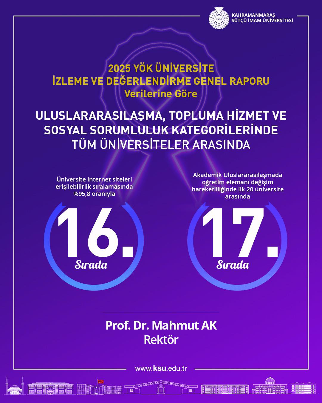 KSÜ, YÖK Üniversite İzleme Ve Değerlendirme Raporu 2025’te İlk 20’de Yer Aldı