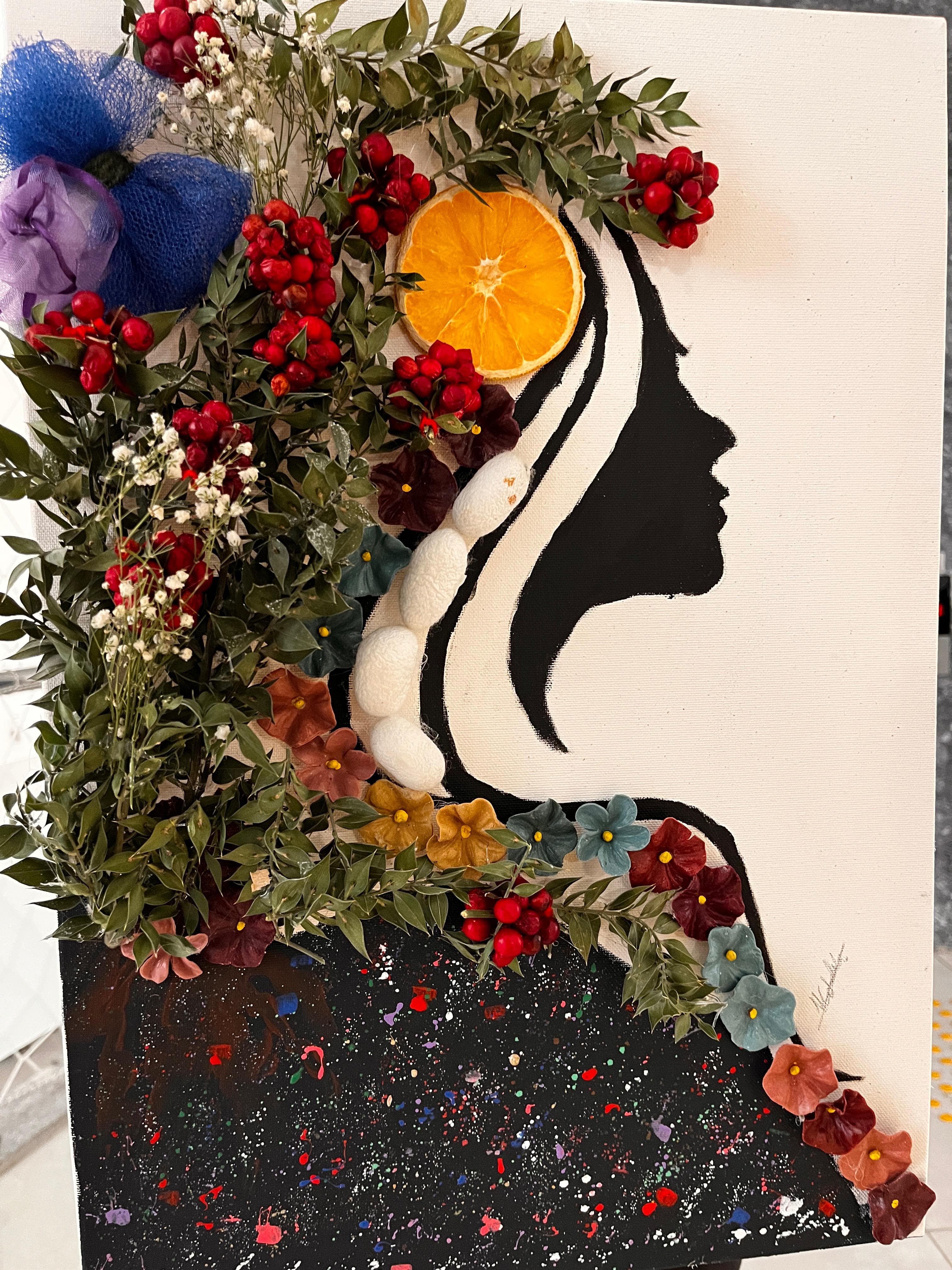 Workshop kapsamında aşırı plastik kullanımı ile sanat eserlerinde plastik malzeme kullanımının yarattığı çatışma, ortaya çıkan renkli ve çarpıcı görüntülerle somutlaştı. Sürdürülebilirlik ve geri dönüşüm vurgusu taşıyan sonbahar yaprakları, ipek kozası, pamuk, doğaya ait fotoğraflar, hayvan kalıntıları (tüy, kabuk vb.), toprak, kuru ağaç dalları, kozalak ve ip gibi doğal malzemeler ile tek kullanımlık plastikler tuval üzerinde bir araya getirildi.