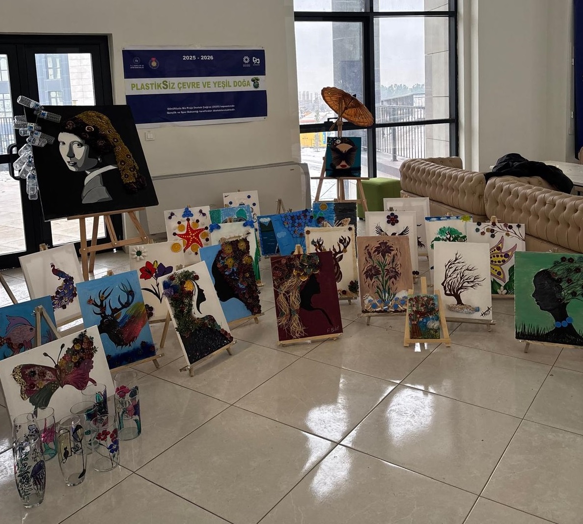 Öğrenciler, bu malzemelerle oluşturdukları tablolara plastik eklemekte zorlandıklarını ifade ederken, plastiğin doğa ile kurduğu uyumsuz ilişkiyi eserleri üzerinden hem görünür kıldılar hem de derinden deneyimlediler.
