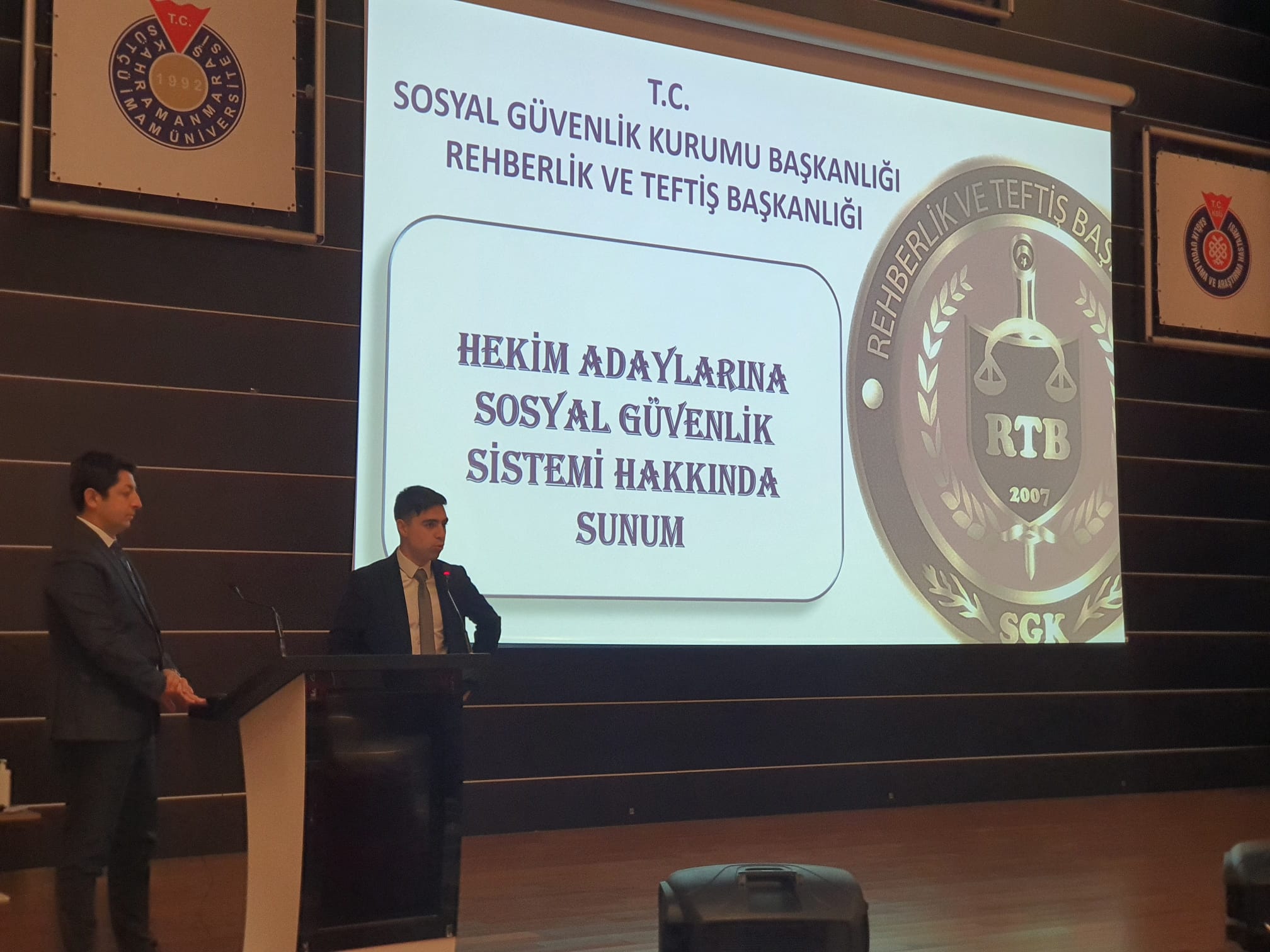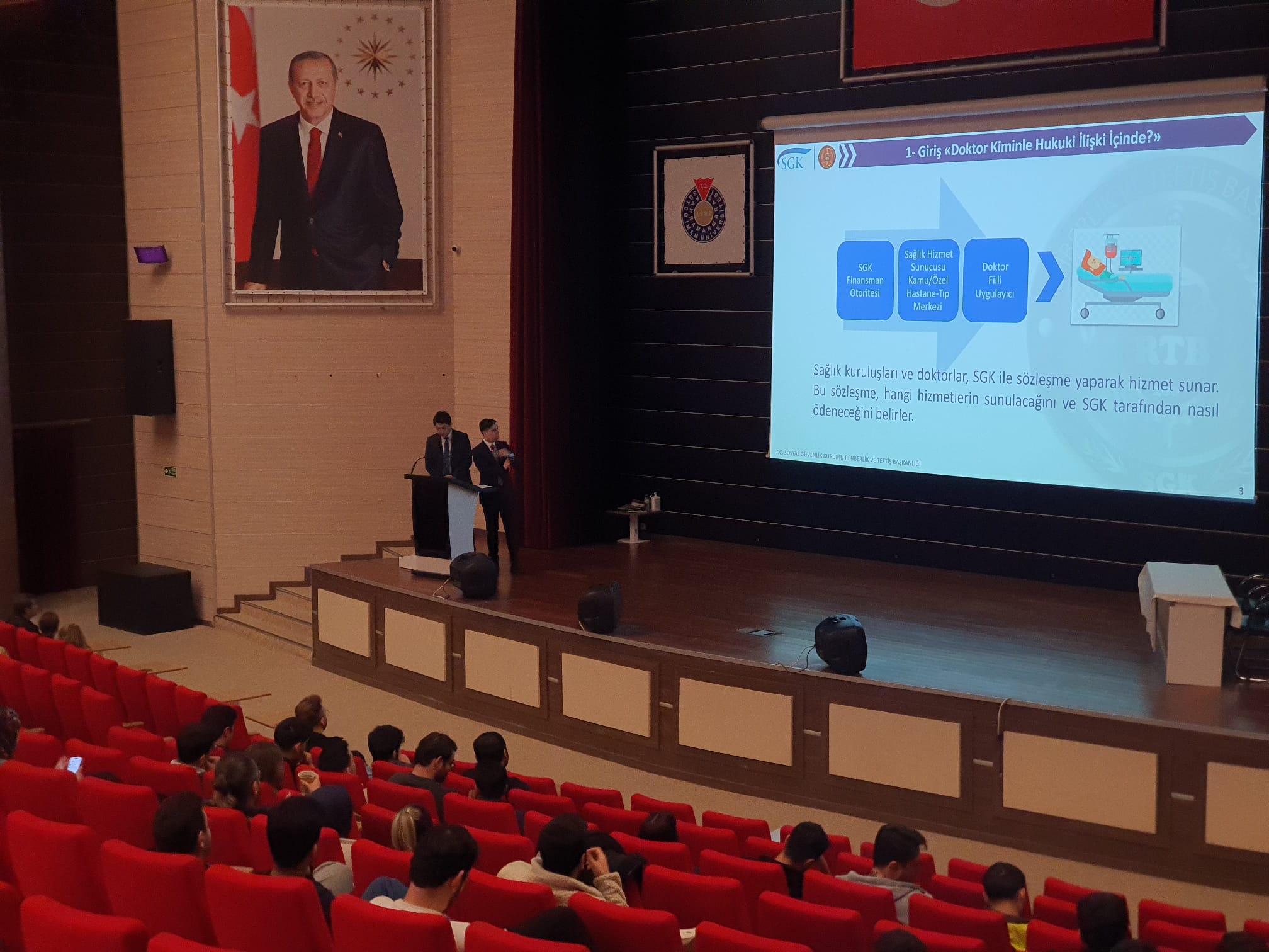 Fakültemizde öğrenim görmekte olan intörn öğrencilerimizin, mezuniyet sonrasında görev yapacakları sağlık hizmeti süreçlerinde karşılaşabilecekleri sözleşme ve protokol hükümleri, olası usulsüzlük durumları ve ilgili yaptırımlar konusunda doğru ve güncel bilgiye sahip olmaları için intörn öğrencilerimize yönelik SGK Rehberlik ve Teftiş Başkanlığı Uzmanlarınca 25 Aralık 2025 Perşembe günü saat:10.00'da Sağlık Uygulama ve Araştırma Hastanesi Konferans Salonunda SGK uygulamaları, sözleşme ve protokol hükümleri, sık karşılaşılan hatalar ve çözüm yollarını içerecek yüz yüze bilgilendirme eğitimi yapıldı.
