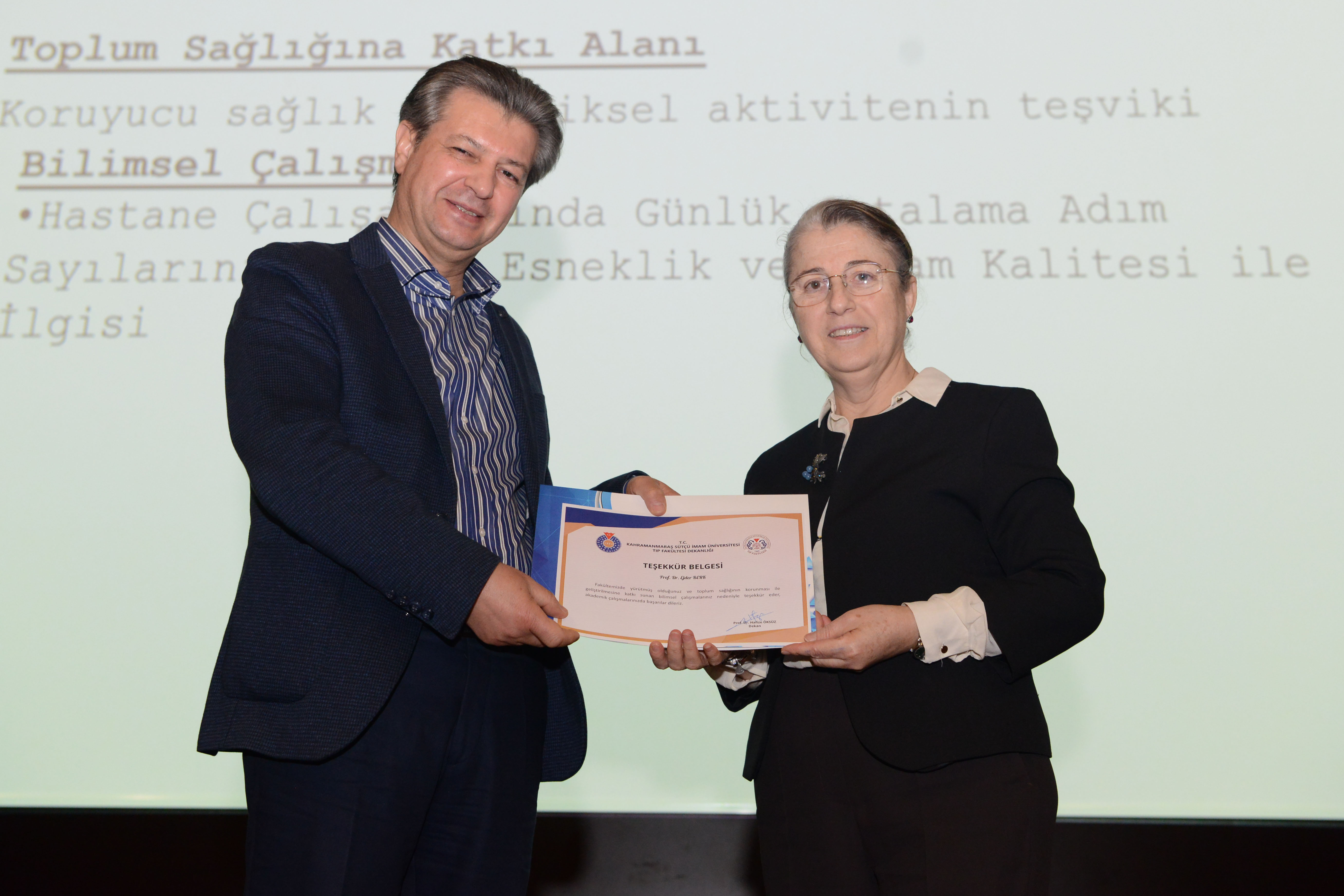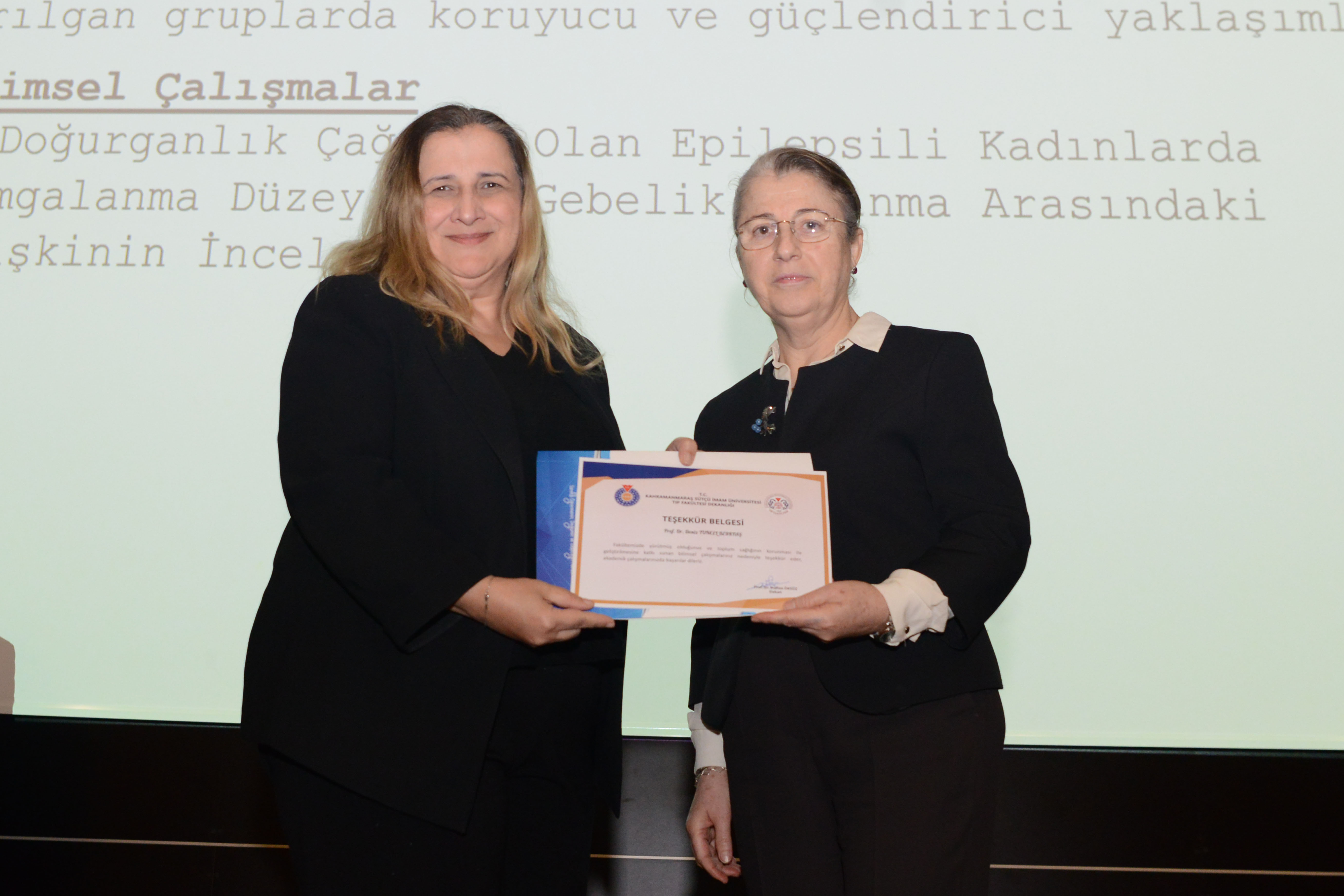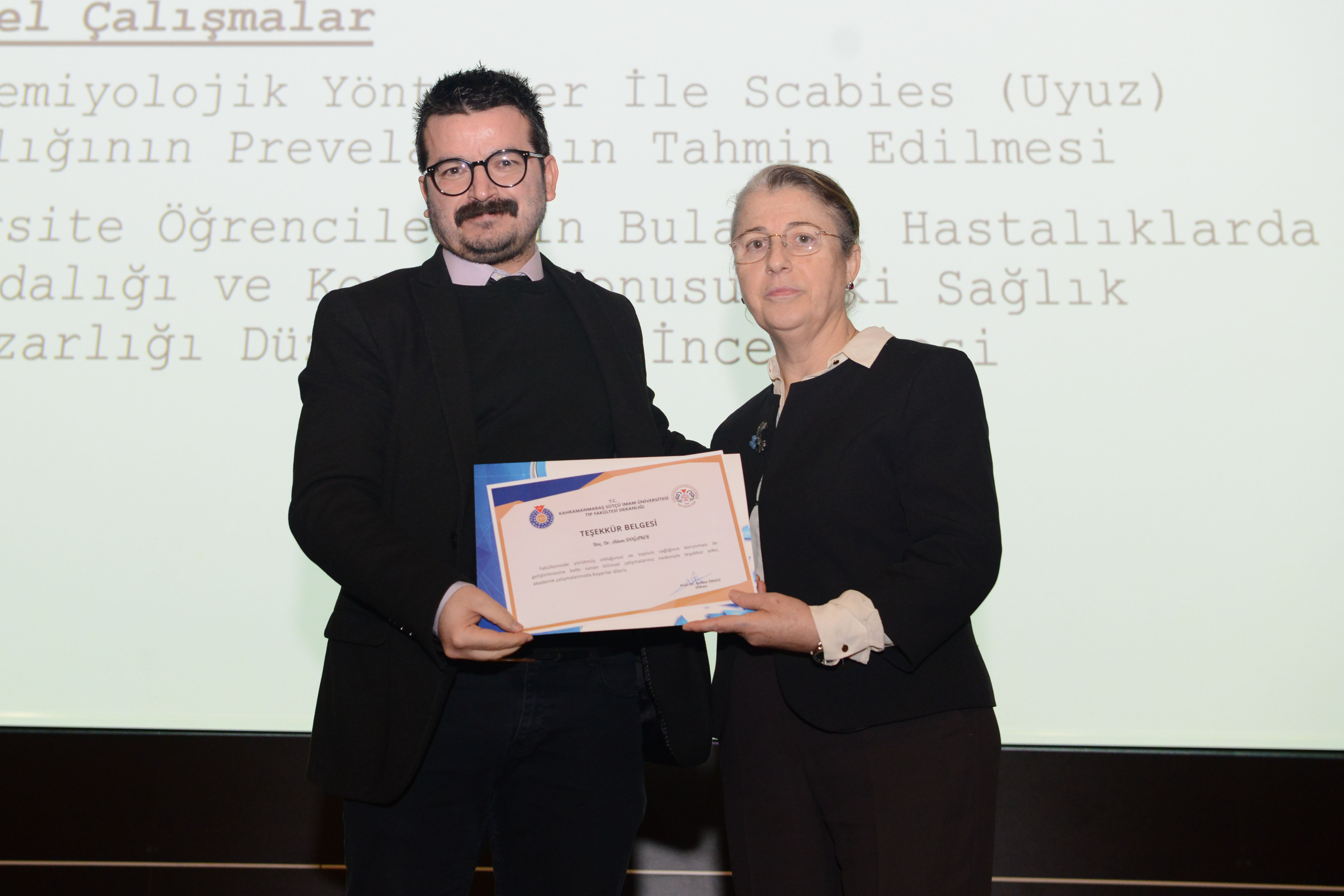 Toplam 23 öğretim üyesine ait 45 bilimsel araştırmanın yer aldığı programda teşekkür belgeleri, Tıp Fakültesi Dekanı Prof. Dr. Hafize Öksüz tarafından takdim edildi.