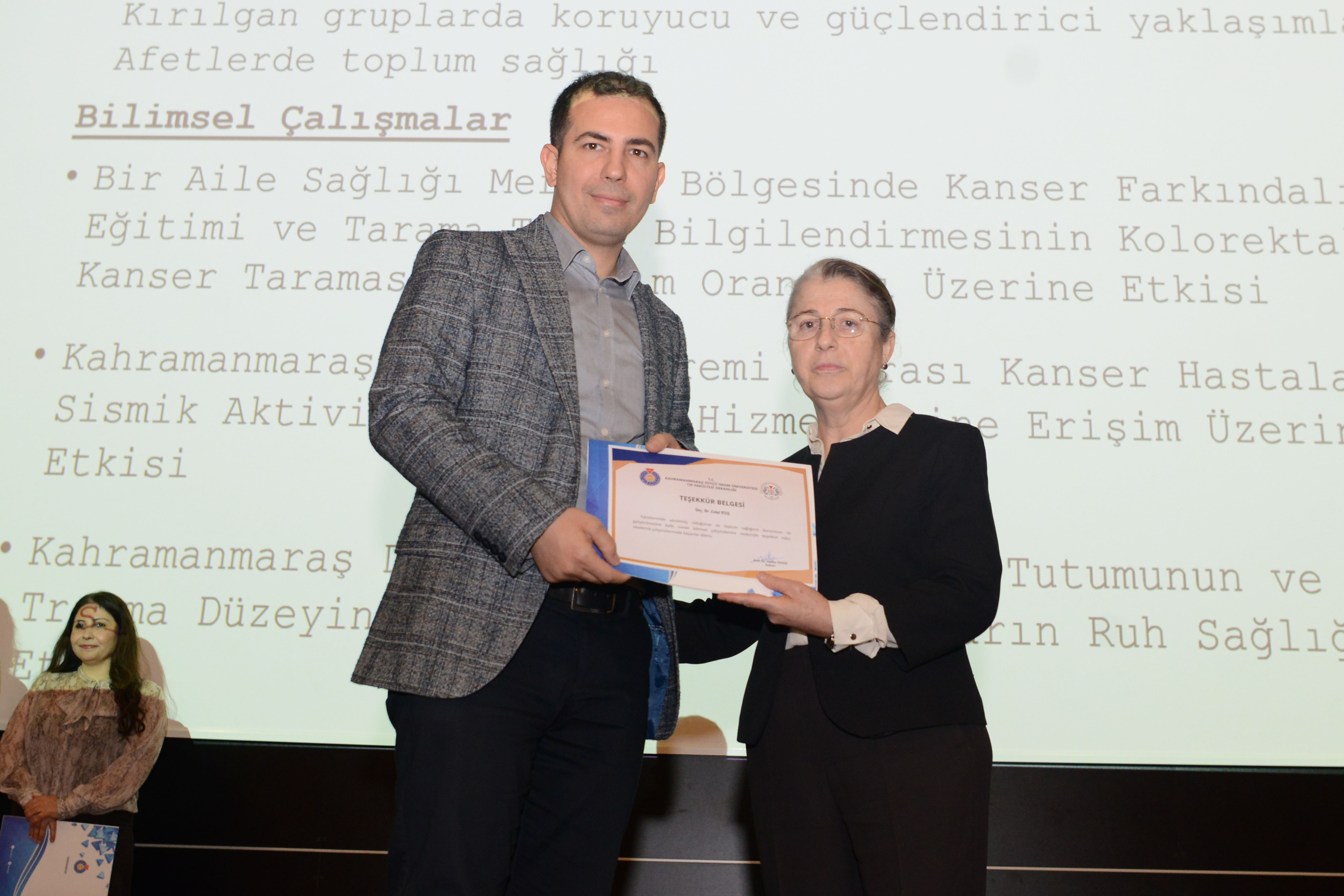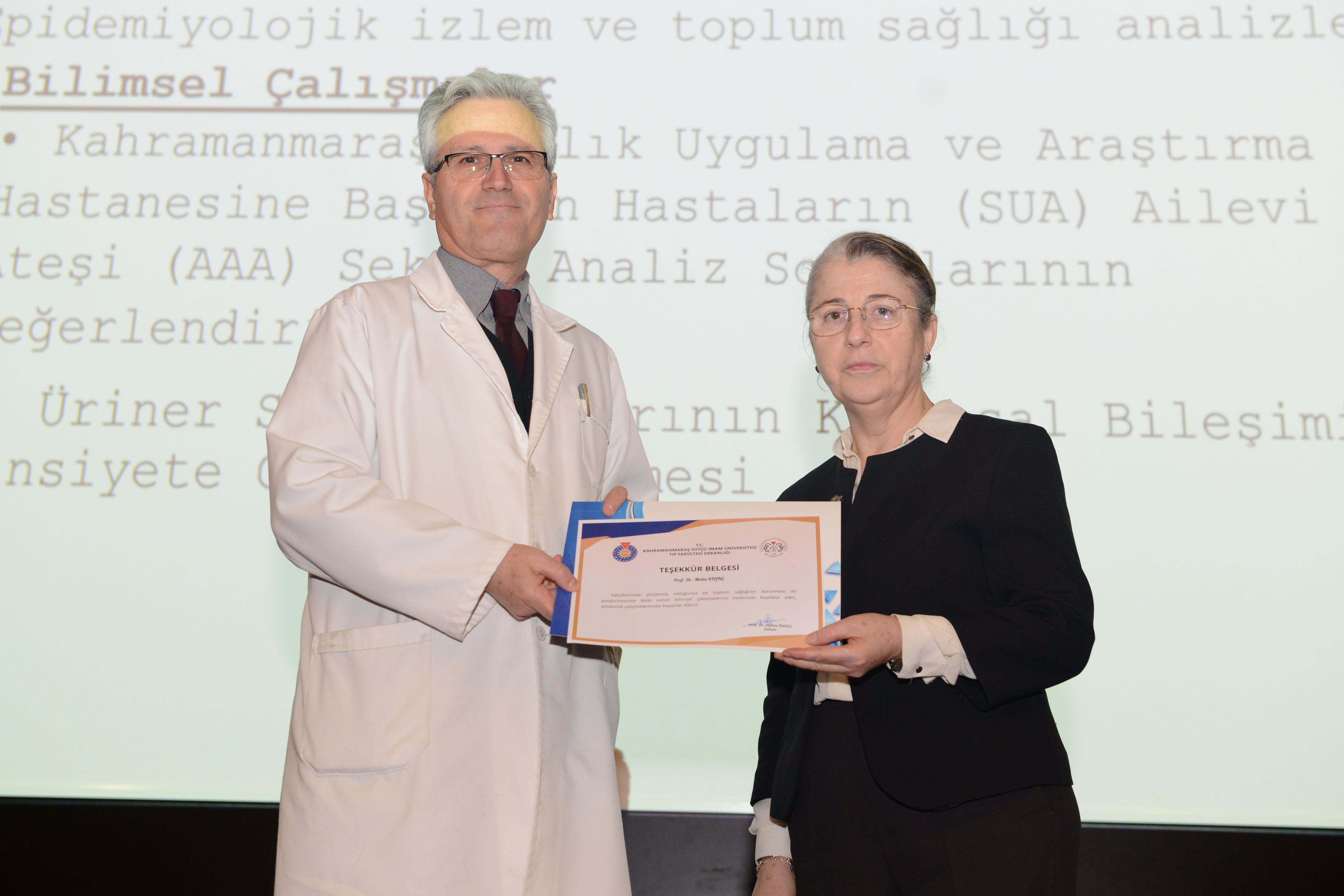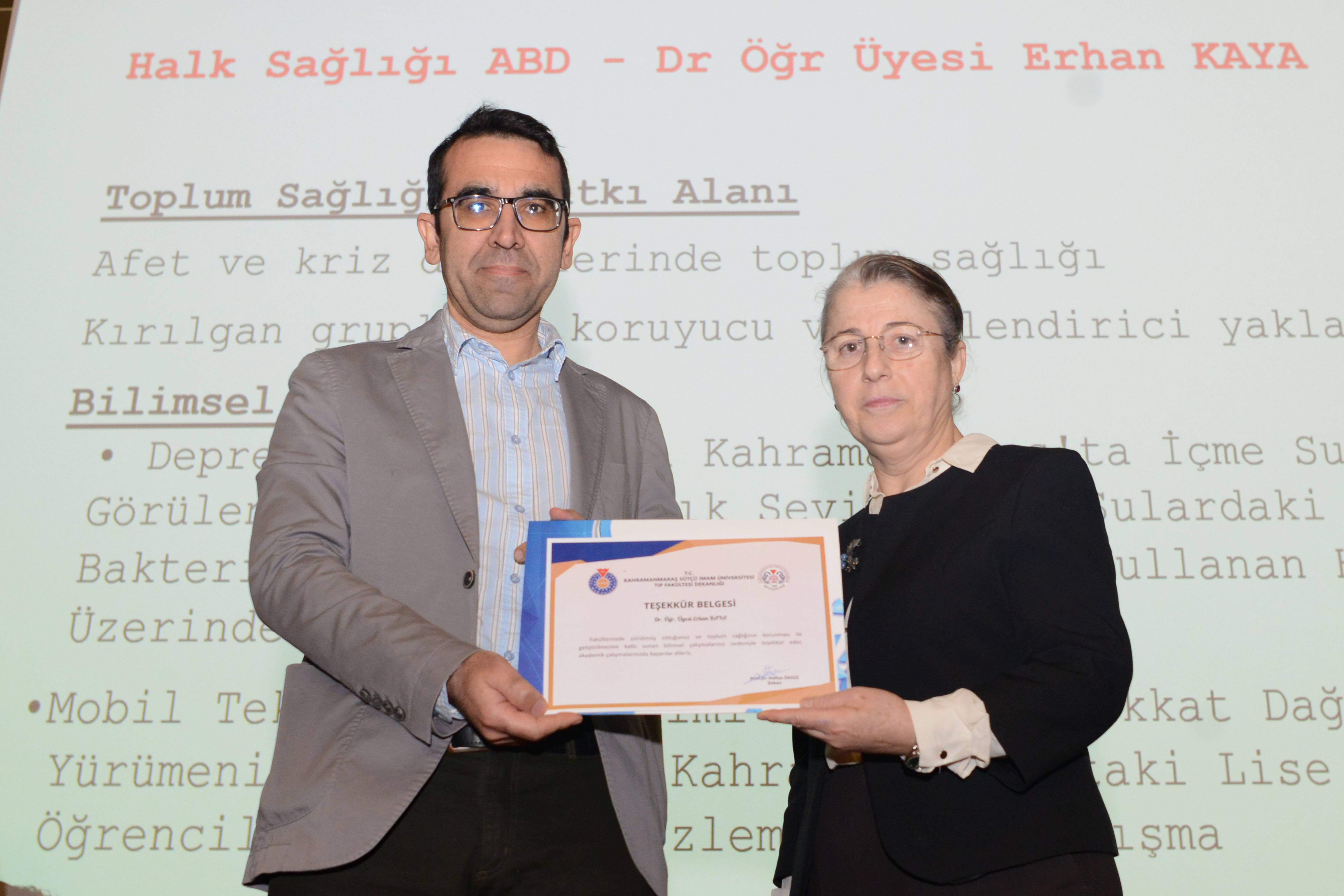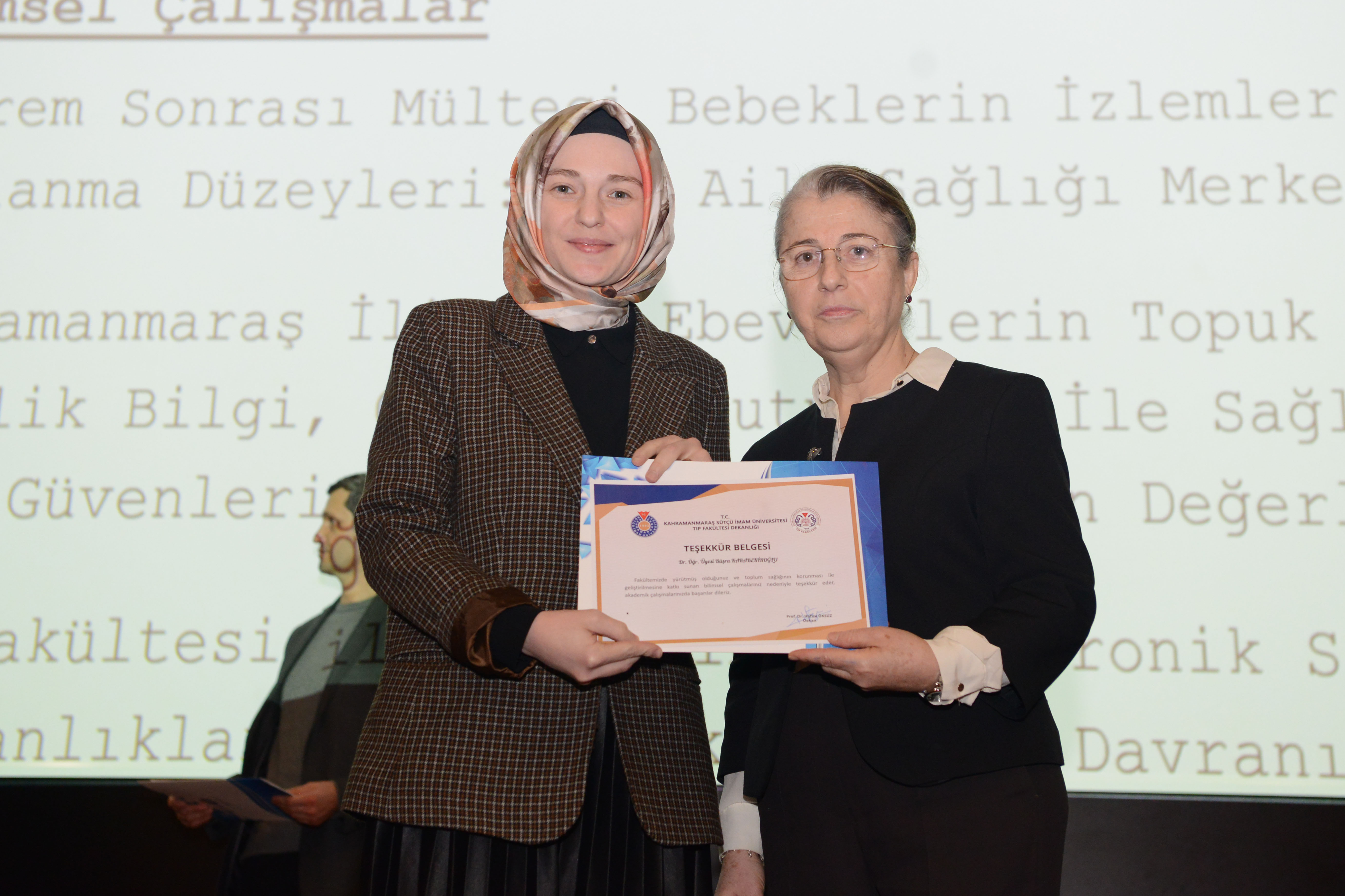 Kahramanmaraş Sütçü İmam Üniversitesi Tıp Fakültesi Dekanlığı tarafından, son üç yıl içerisinde toplum sağlığının korunması ve geliştirilmesine katkı sunan bilimsel çalışmaları bulunan öğretim üyeleri için teşekkür belgesi takdim programı düzenlendi.