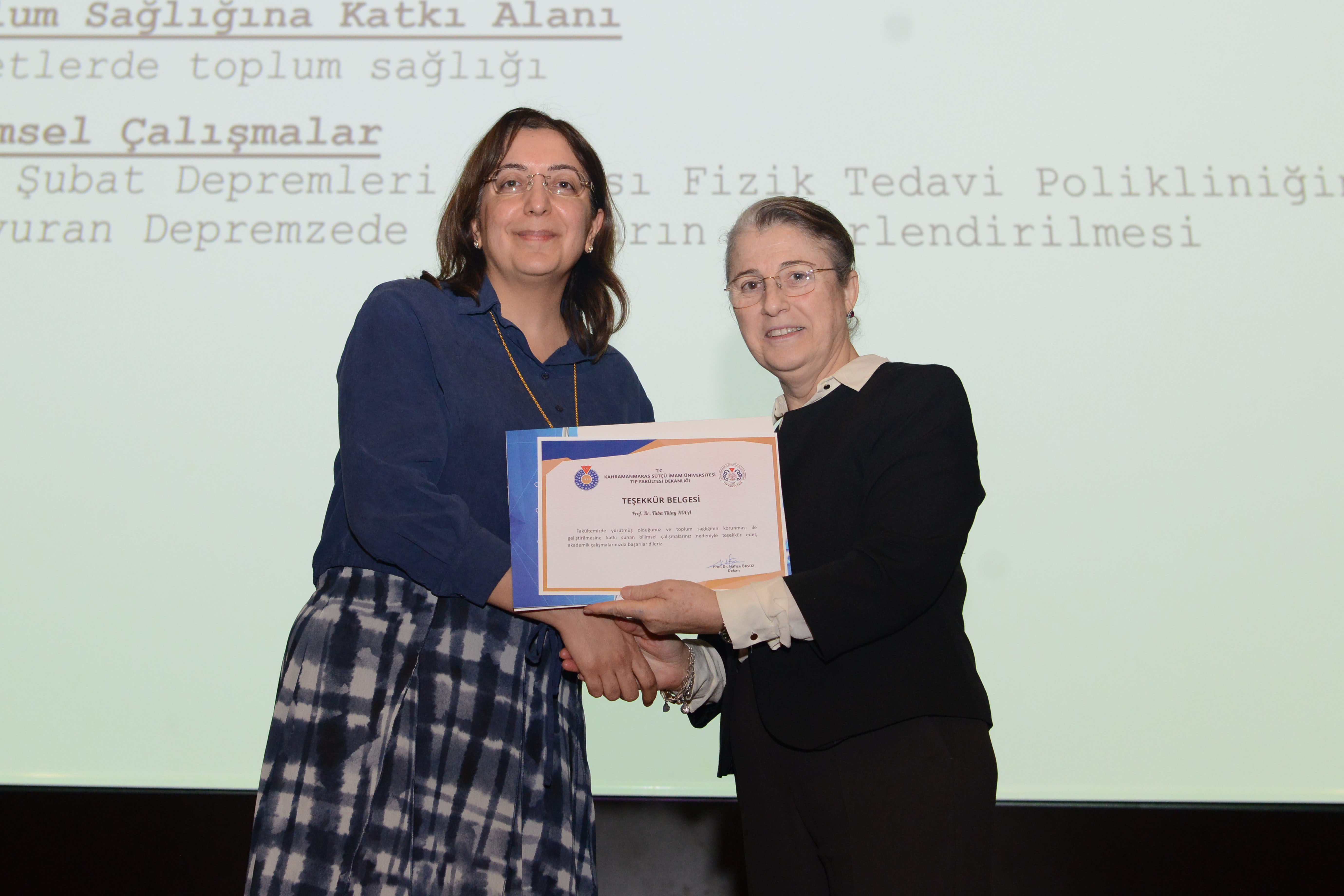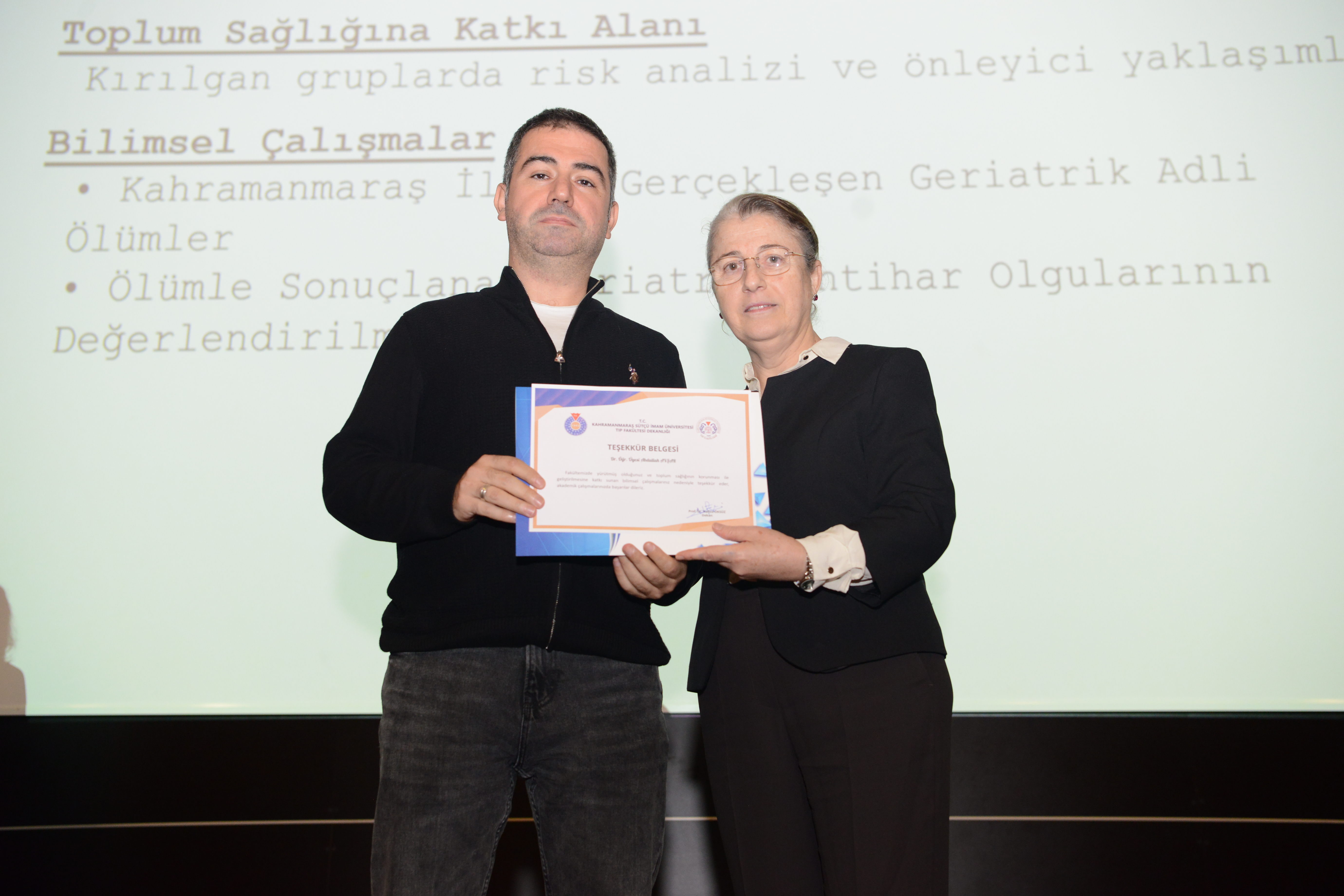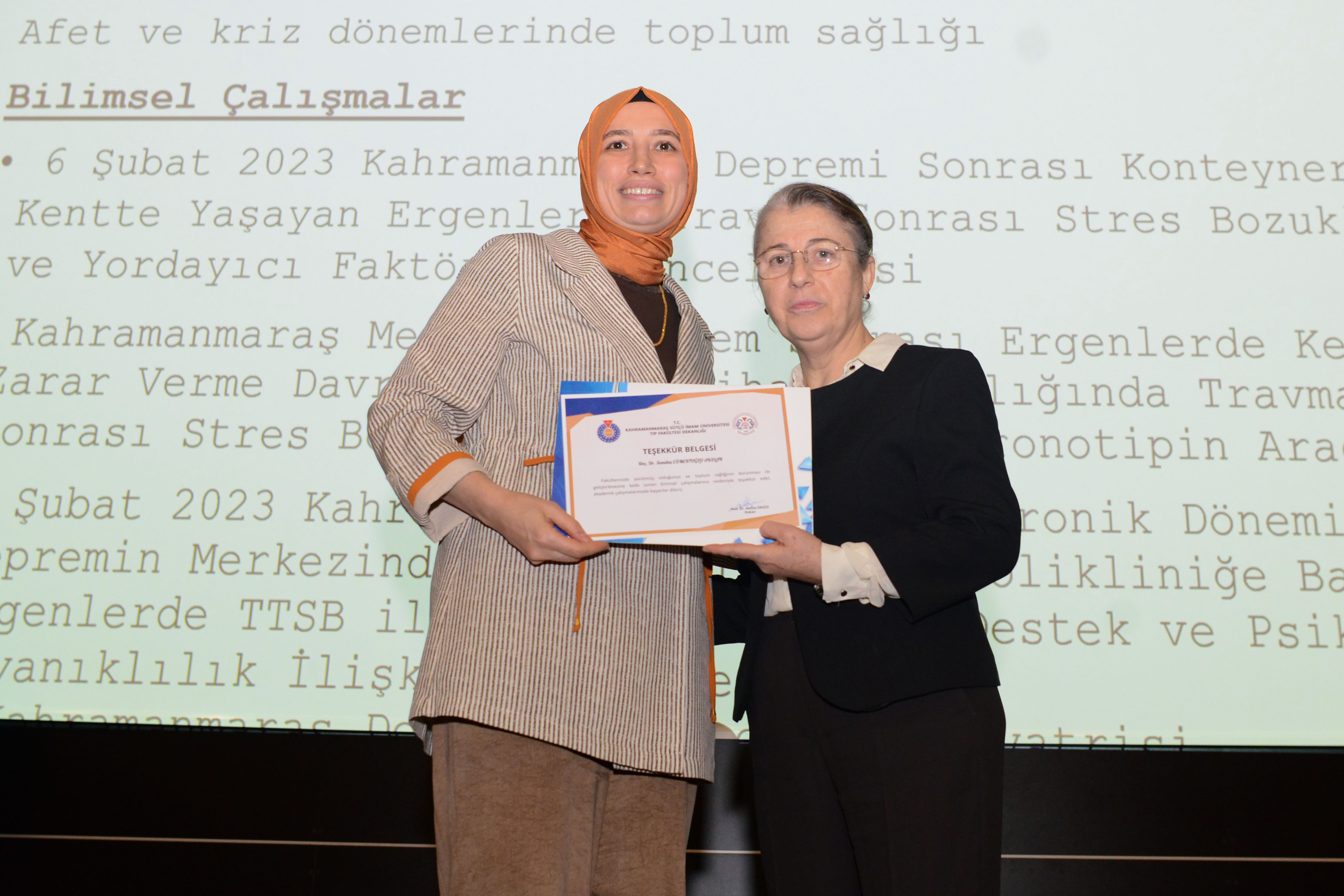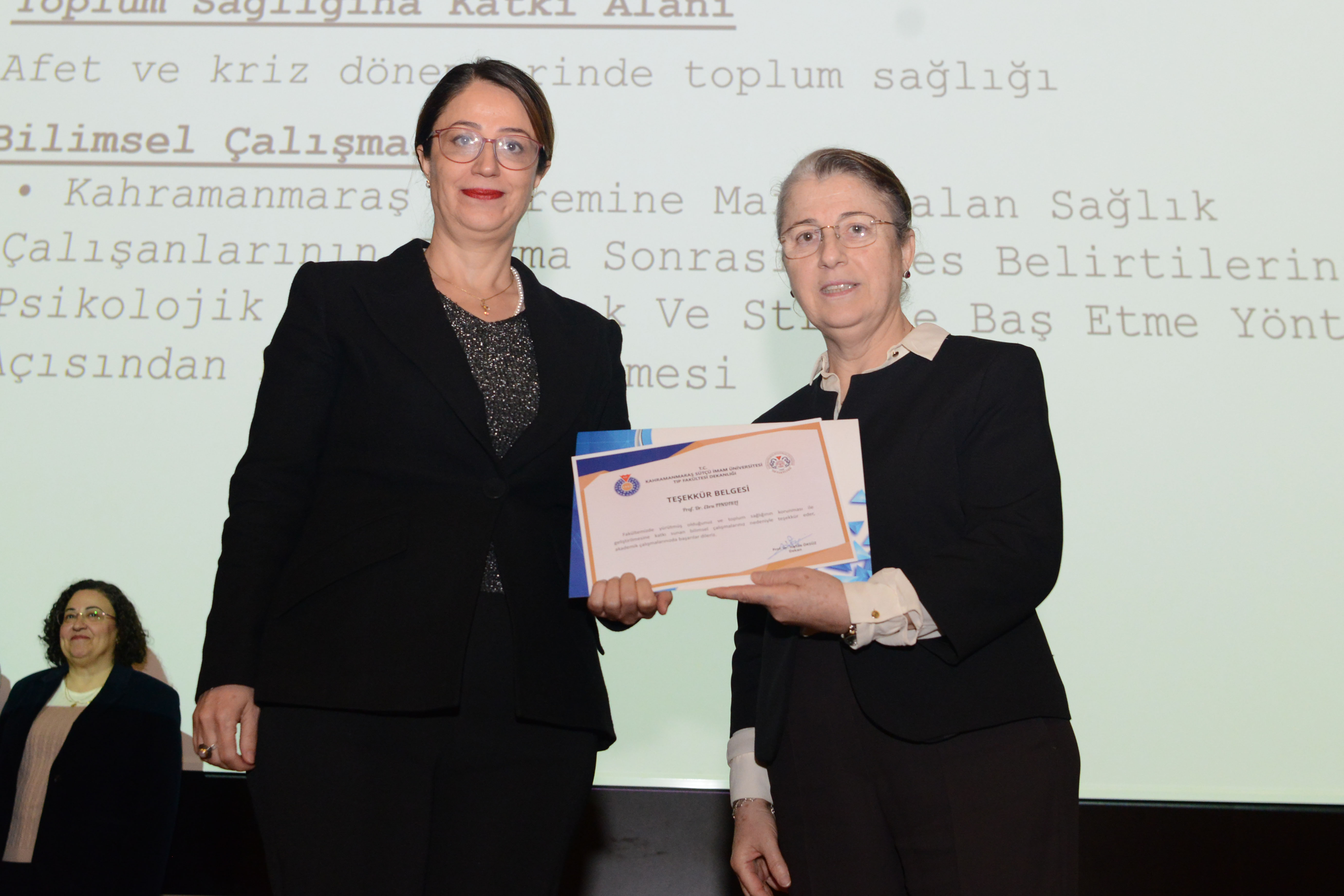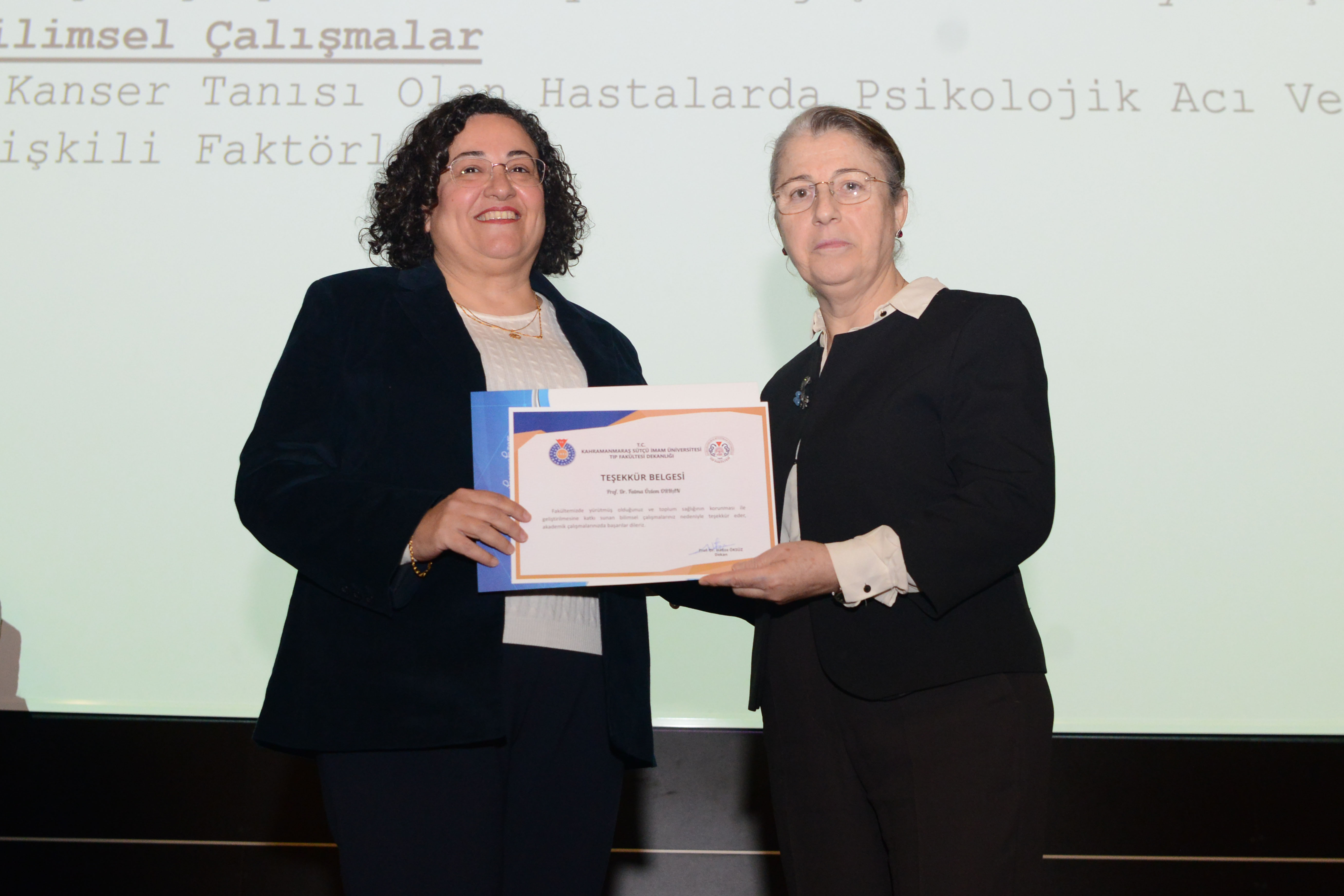 Kahramanmaraş Sütçü İmam Üniversitesi Tıp Fakültesi Dekanlığı tarafından, son üç yıl içerisinde toplum sağlığının korunması ve geliştirilmesine katkı sunan bilimsel çalışmaları bulunan öğretim üyeleri için teşekkür belgesi takdim programı düzenlendi.
