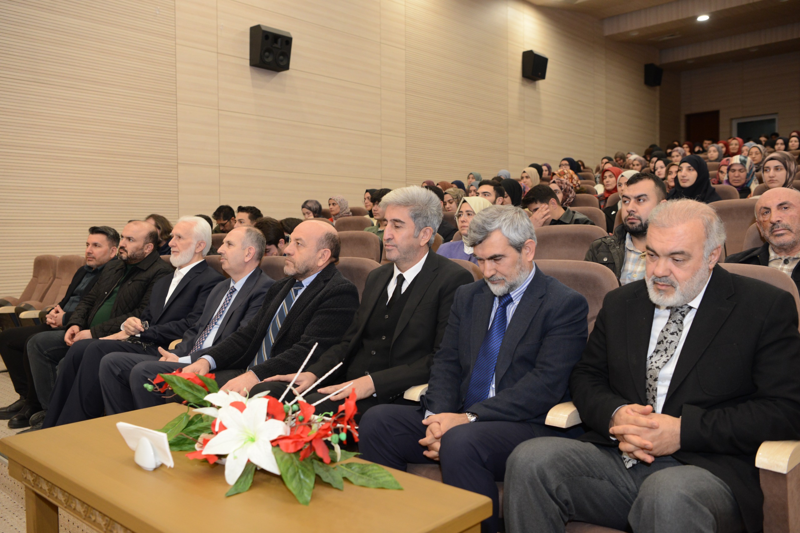 Programa KSÜ Rektör Vekili Prof. Dr. Salih Yeşil, Rektör Yardımcısı Prof. Dr. Ramazan Çetintaş, Kahramanmaraş İl Müftüsü Dr. Hasan Hüseyin Güller, İlahiyat Fakültesi Dekanımız Prof. Dr. Ahmet Abay, Bursa Uludağ Üniversitesi İlahiyat Fakültesi Öğretim Üyesi ve Ayasofya-i Kebir Cami-i Şerifi Başimam Hatibi Prof. Dr. Mehmet Emin Ay, akademisyenler ve öğrenciler katıldı.