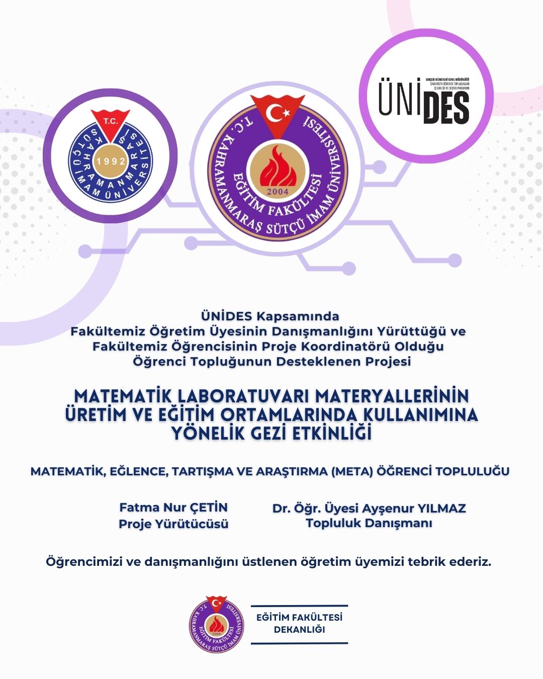ÜNİDES Kapsamında Eğitim Fakültesi Bünyesindeki Öğretim Üyelerinin ve Öğrencilerinin Dahil Olduğu Öğrenci Topluluk Projeleri Destek Almaya Hak Kazandı!
