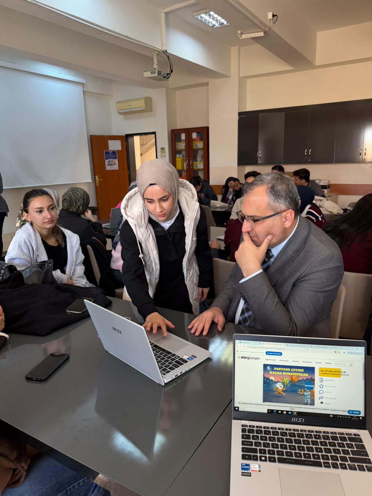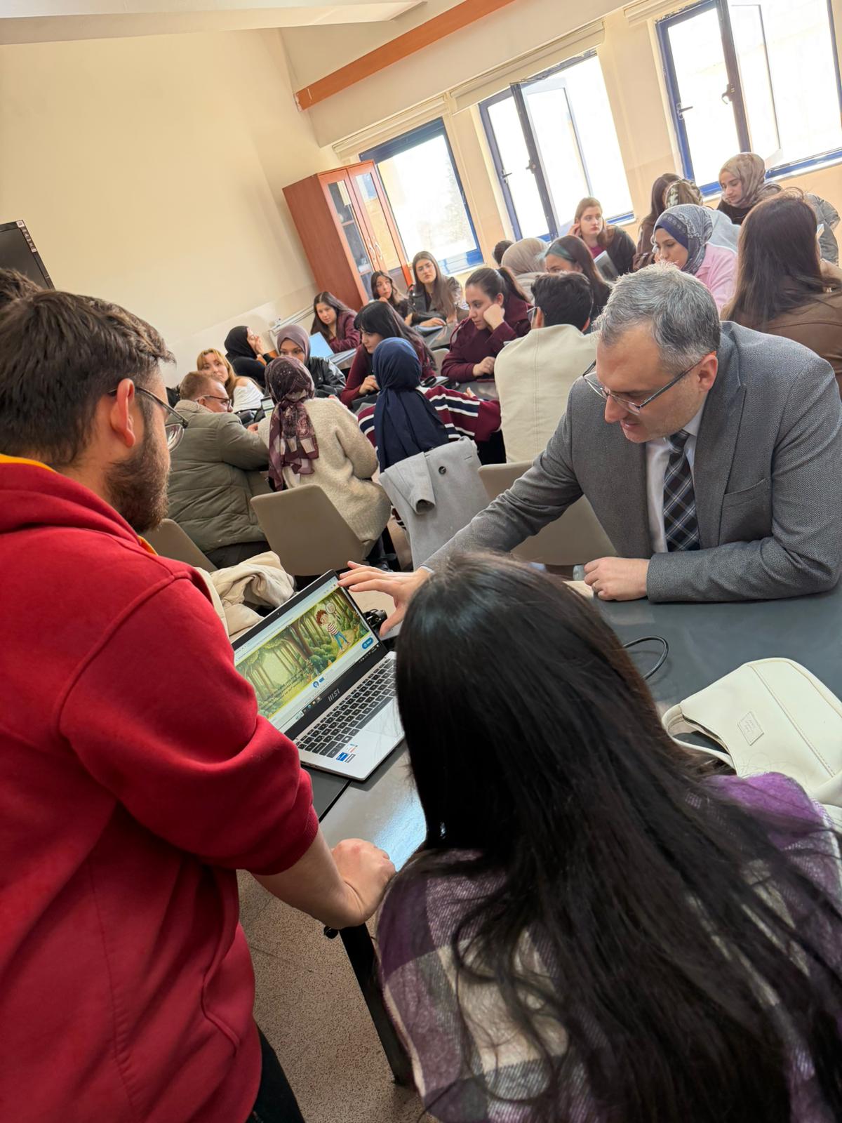 Dekanımızın açılış konuşmasıyla başlayan sergide, öğretmen adayları tarafından yazılan dijital öyküler çeşitli dijital platformlarda görsellerle desteklenerek e-kitap hâline getirildi ve seslendirilerek sunuldu. Böylece öğretmen adayları dijital hikâye oluşturma sürecini uygulamalı olarak deneyimleme fırsatı buldu. Öğretim üyelerimiz, öğrencilerin hazırladığı dijital hikâyeleri ilgiyle dinleyerek çalışmaları yakından inceledi ve değerlendirmelerde bulundu.