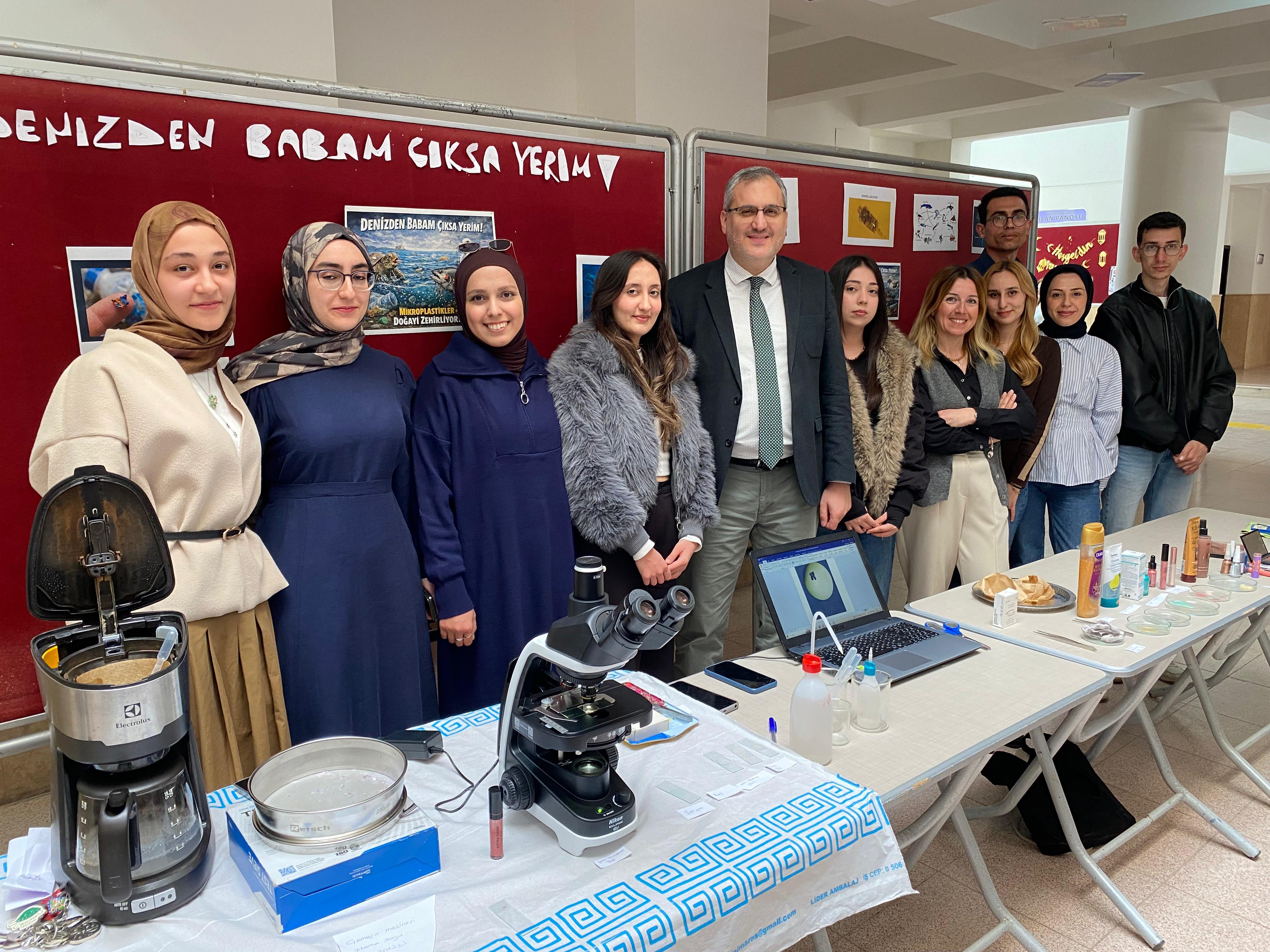 Dekanımızın açılış konuşmasıyla başlayan sergide, günlük hayatta kullandığımız makyaj malzemeleri, giydiğimiz kıyafetler ile tükettiğimiz yiyecek ve içeceklerin dahi yüksek oranda mikroplastik içerebildiği vurgulanarak bu konuda toplumsal farkındalık oluşturulması amaçlandı.