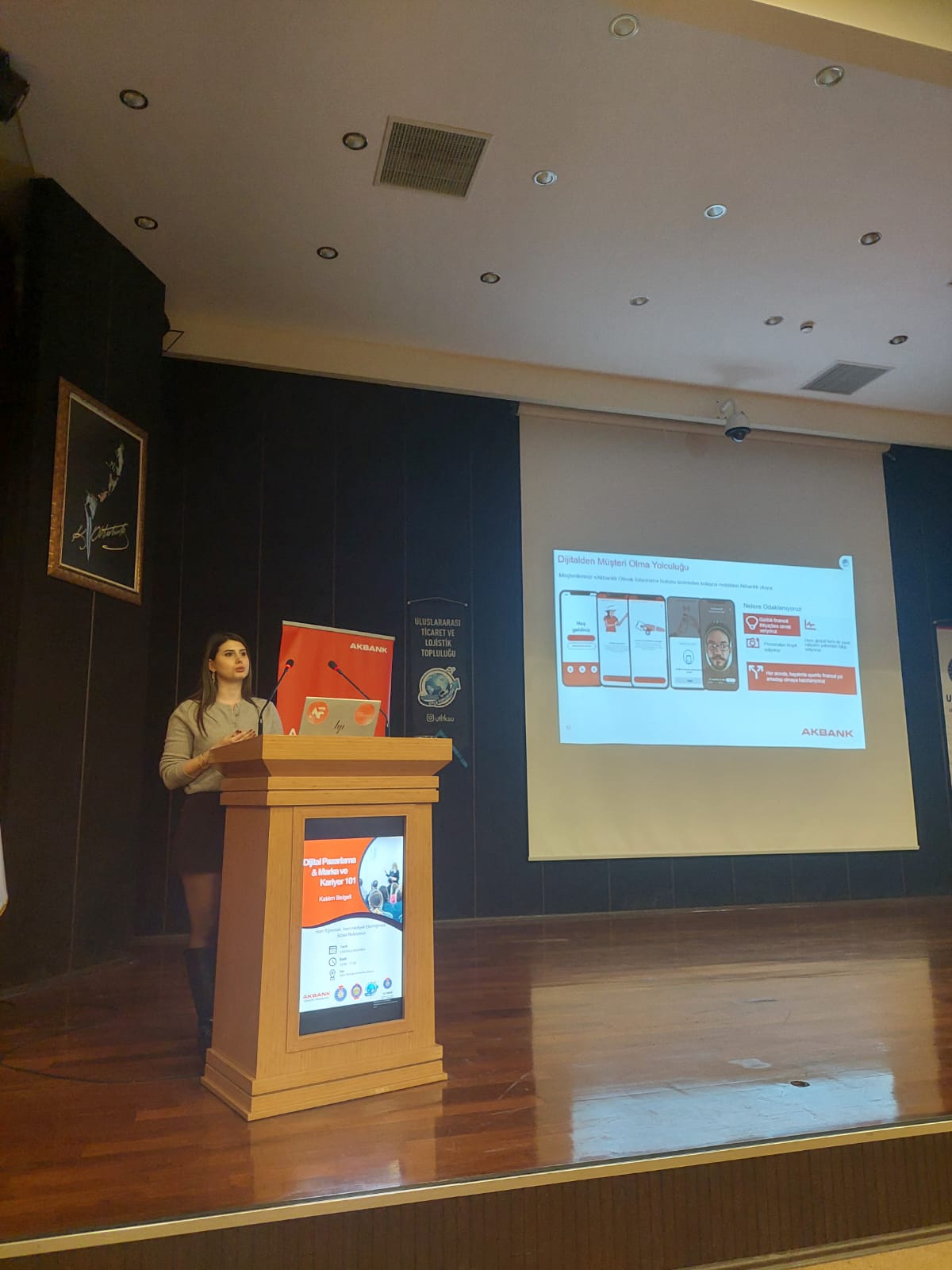 İktisadi ve İdari Bilimler Fakültesi, Uluslararası Ticaret ve Lojistik Bölümü, Uluslararası Lojistik ve Ticaret Uygulama ve Araştırma Merkezi (ULTİMER) ve Uluslararası Ticaret ve Lojistik Öğrenci Topluluğu ile Akbank iş birliği ile 01.04.2026 tarihinde saat:13:00-17:00 arasında Cahit Zarifoğlu Konferans salonunda Akbank Gençlik Akademisi tarafından yürütülen “Kampüs 101” programı kapsamında “Dijital Pazarlama & Marka Yönetimi ve Kariyer” eğitimi gerçekleştirildi.
