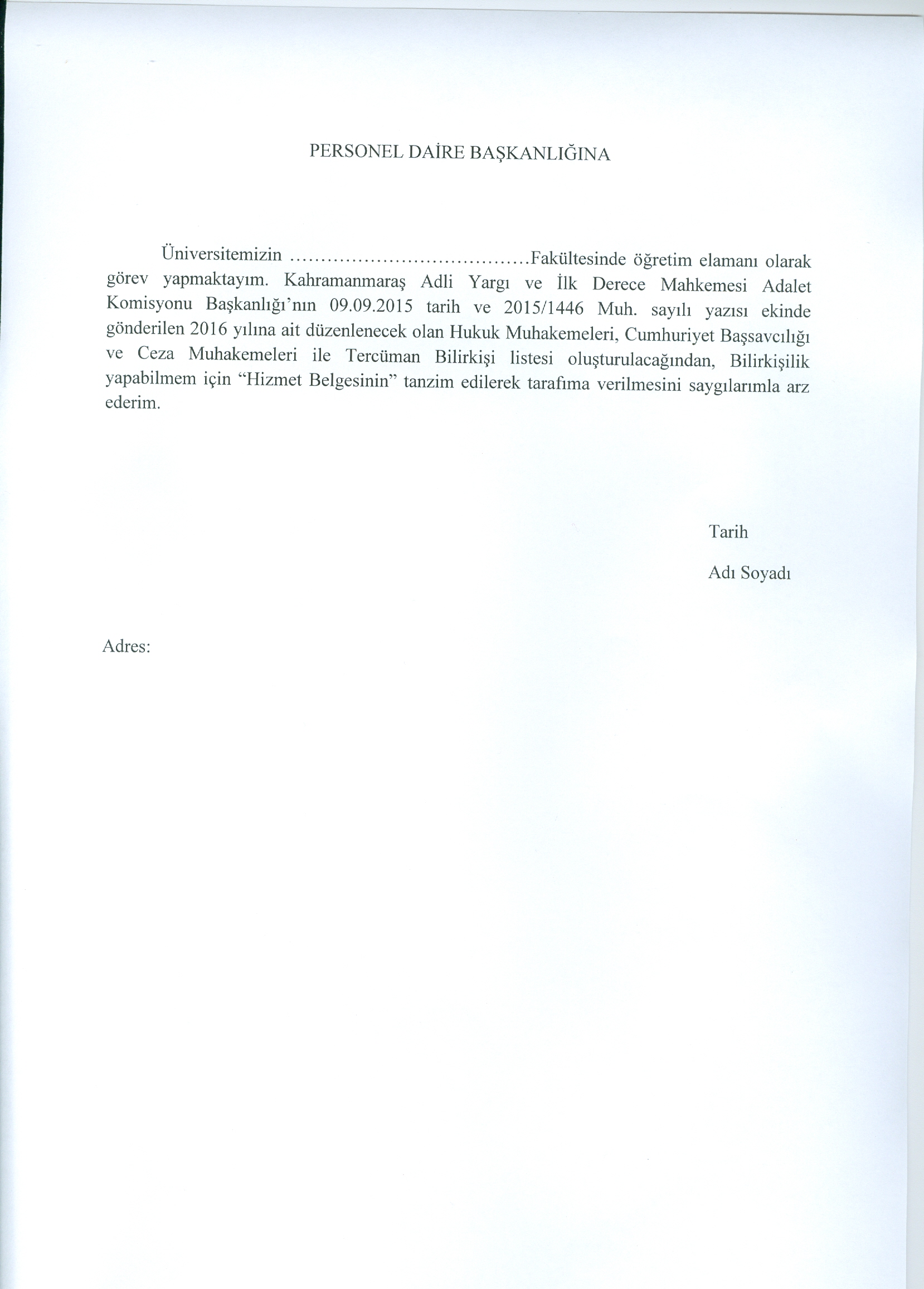 Dilekçe Örneğini İndirmek İçin Tıklayınız