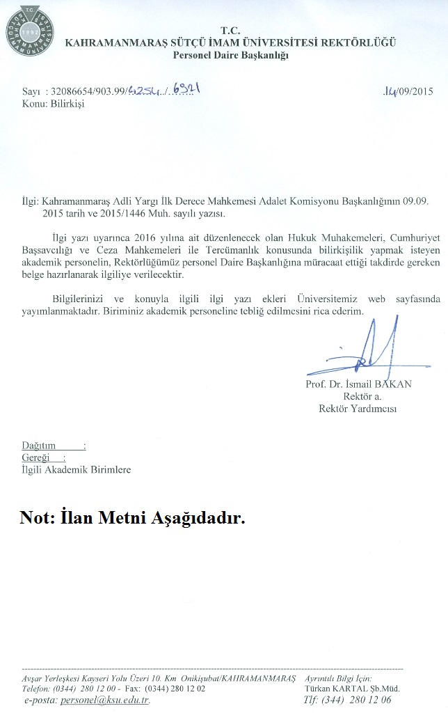 İlan Metnini İndirmek İçin Tıklayınız