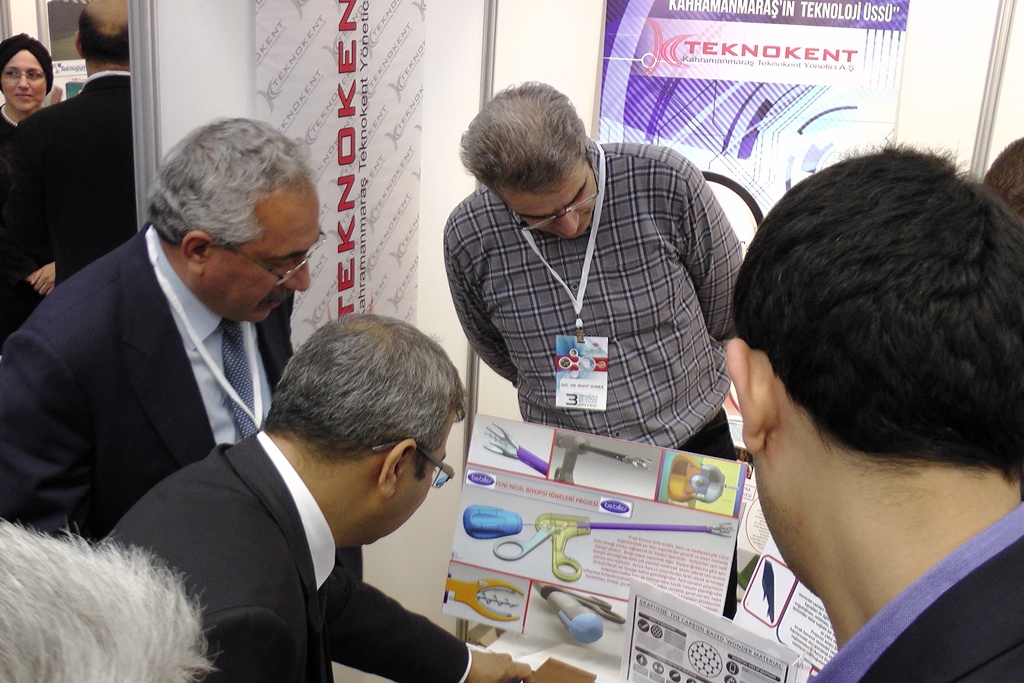 Bilim, Sanayi ve Teknoloji Bakanı Fikri Işık, ikincilik ödülü alan Kahramanmaraş TEKNOKENT’in standını ziyaret ederek, Rektör Prof. Dr. Durmuş Deveci ile bir süre görüştü. Kahramanmaraş TEKNOKENT’te yürütülen çalışmalar hakkında bilgi alan Bakan Fikri Işık, TEKNOKENT’te geliştirilen hastalıkların teşhisinde büyük bir kolaylık sağlayan, doku örneği alımında acıyı azaltan ve tek seferde daha çok numune alınmasına olanak sağlayan ‘Burgu Uçlu Biyopsi İğnesini’ ilgiyle inceledi.