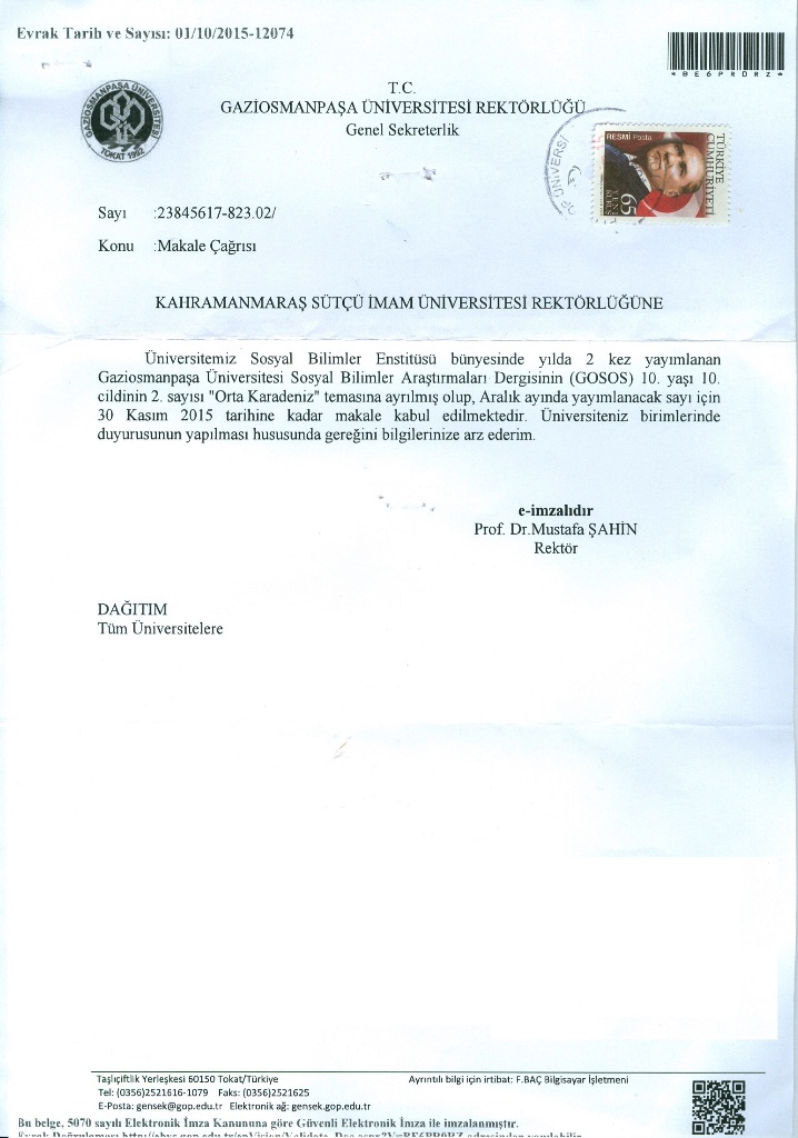 Gaziosmanpaşa Üniversitesi Duyurusu: Makale Çağrısı