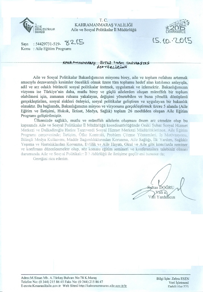 Kahramanmaraş Valiliği Duyurusu: Aile Eğitim Programı
