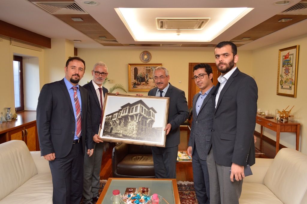 Ziyaret sonunda Baro Başkanı Av. Vahit Bağcı tarafından Rektör Prof. Dr. Durmuş Deveci’ ye tarihi Dedeoğlu Konağı tablosu takdim edildi.