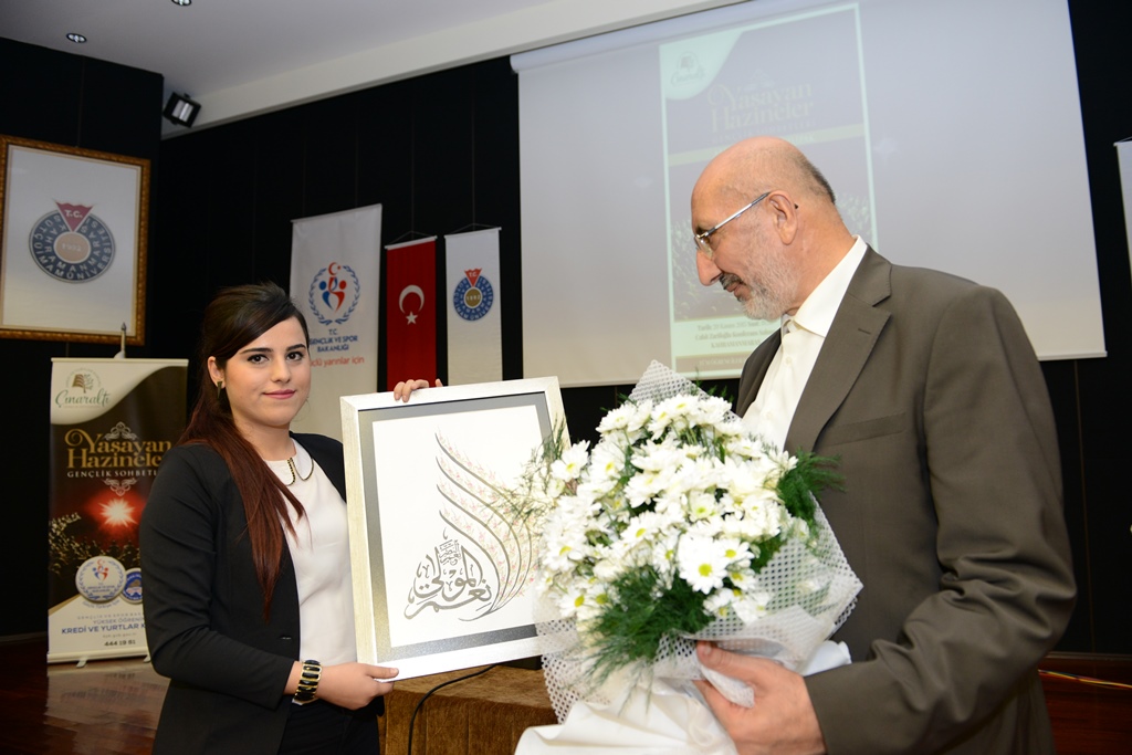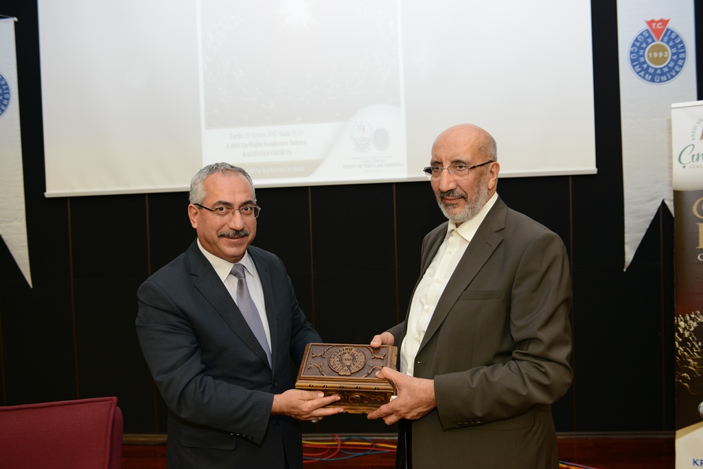 Soru-cevap bölümü ile son bulan söyleşinin ardından KSÜ Rektörü Prof. Dr. Durmuş Deveci, Gazeteci-Yazar Dilipak’a Kahramanmaraş el işçiliğinin en güzel örneklerinden olan oyma ceviz sandık hediye etti. Dilipak’a ayrıca KSÜ öğrencileri tarafından yapılan tezhip tablosu da takdim edildi.
