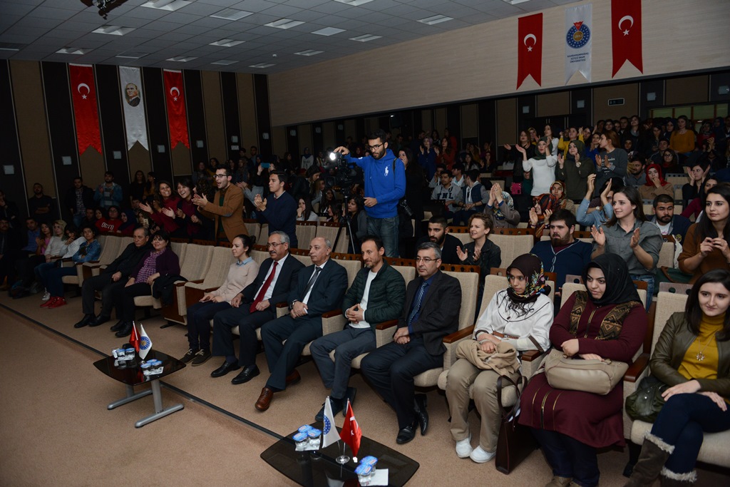 KSÜ Cahit Zarifoğlu Konferans Salonu’nda düzenlenen konsere personel ve öğrenciler yoğun ilgi gösterdi. Rektörümüz Prof. Dr. Durmuş Deveci de konsere katılarak öğrencilerle birlikte bazı eserlere eşlik etti. Re Team grubu üyelerinin daveti üzerine sahneye çıkan Rektör Deveci, öğrencilere seslenerek; “Her fırsatta sizlere seslenirken hep çok çalışmanızı tavsiye ediyorum. Ama bazen eğlenmekte gerek. Biz bütün çalışmalarımızı öğrenci odaklı yapıyoruz. Bizim için sizlerin her türlü imkana erişmesi çok önemli” diyerek, bu tür etkinliklere destek vermeye devam edeceklerini söyledi.