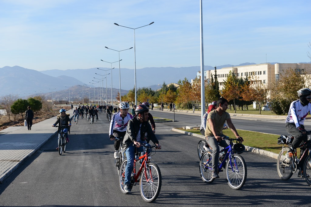 Açılış konuşmalarının ardından 50 bisikletin üniversiteye teslimi gerçekleştirilirken, protokol üyeleri öğrencilerle birlikte, “İki Teker, Obezite ve Kalbe Yeter” sloganıyla pedal çevirdi. Etkinlikler çerçevesinde KSÜ Beden Eğitimi ve Spor Yüksekokulu öğrencileri yeni spor branşlarını tanıtırken, Rektör Deveci ‘boccia’ ve ‘hemsball’ tanıtım stantlarını gezerek atışlar yaptı. Etkinlikler, kan bağışının ardından öğrencilere mandalina ve elma ikramıyla son buldu.