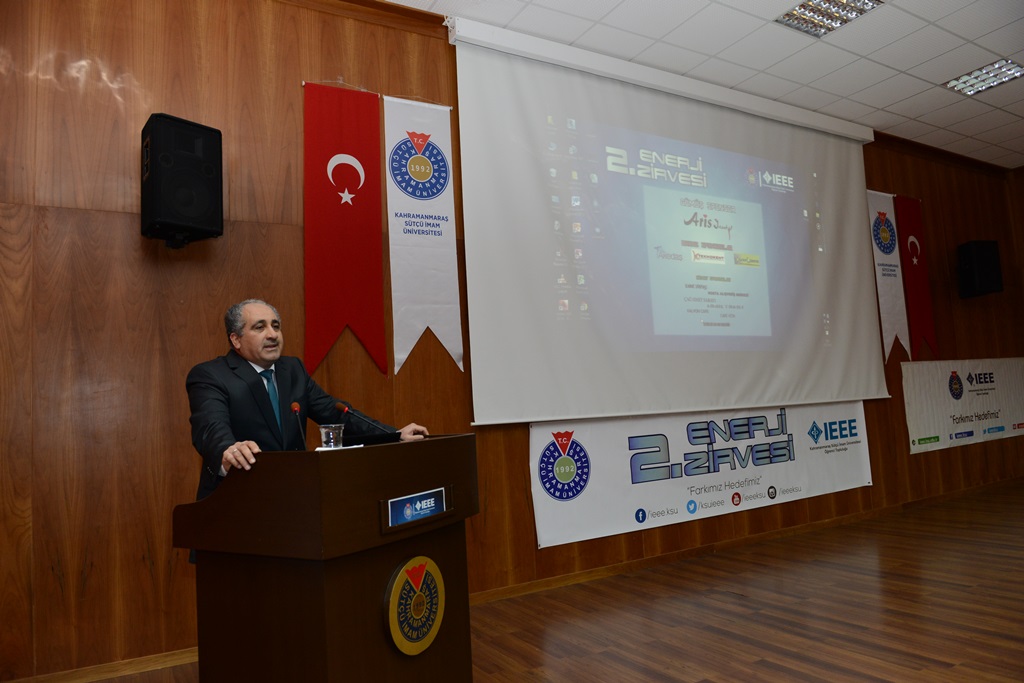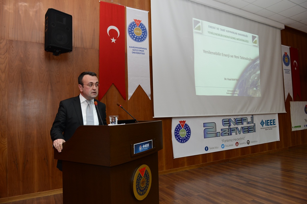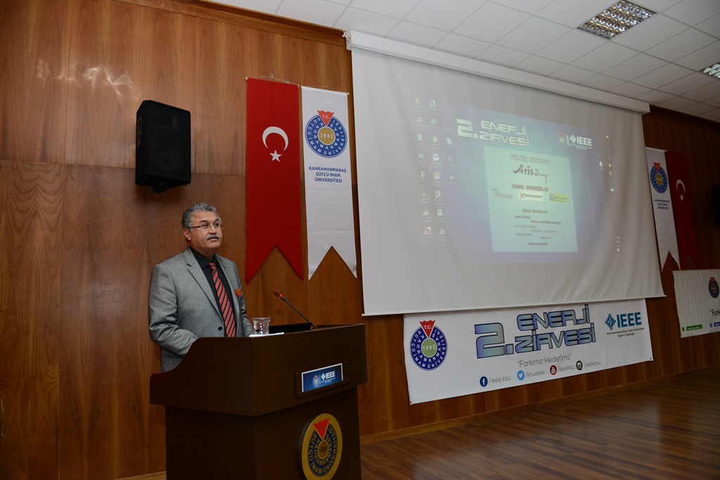KSÜ İEEE Öğrenci Topluluğu Danışmanı ve Fen Bilimleri Enstitüsü Müdürü Doç. Dr. Mustafa Şekkeli ise konuşmasının başında 2. Enerji Zirvesi’nin düzenlenmesine katkı sağlayanlara teşekkür etti. Türkiye’de enerji talebinin her yıl yüzde 7 oranında arttığının altını çizen Doç. Dr. Şekkeli, “Bu yüzden enerji konusu bizim için çok önemli, ülke olarak yenilenebilir enerji kaynaklarının araştırılmasına önem vermeliyiz” diye konuştu.