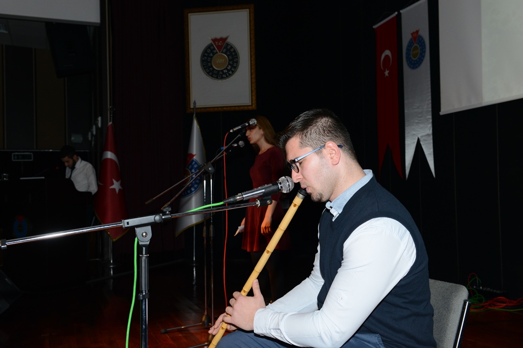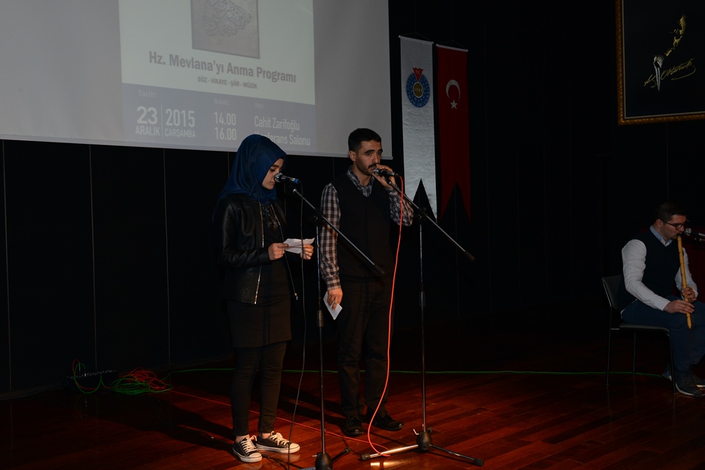 Açılış konuşmasının ardından topluluk öğrencilerince Mevlânâ’nın özlü sözleri, Mesnevi’den kıssalar ve Mevlânâ için yazılan şiirler ney nağmeleri eşliğinde icra edildi.