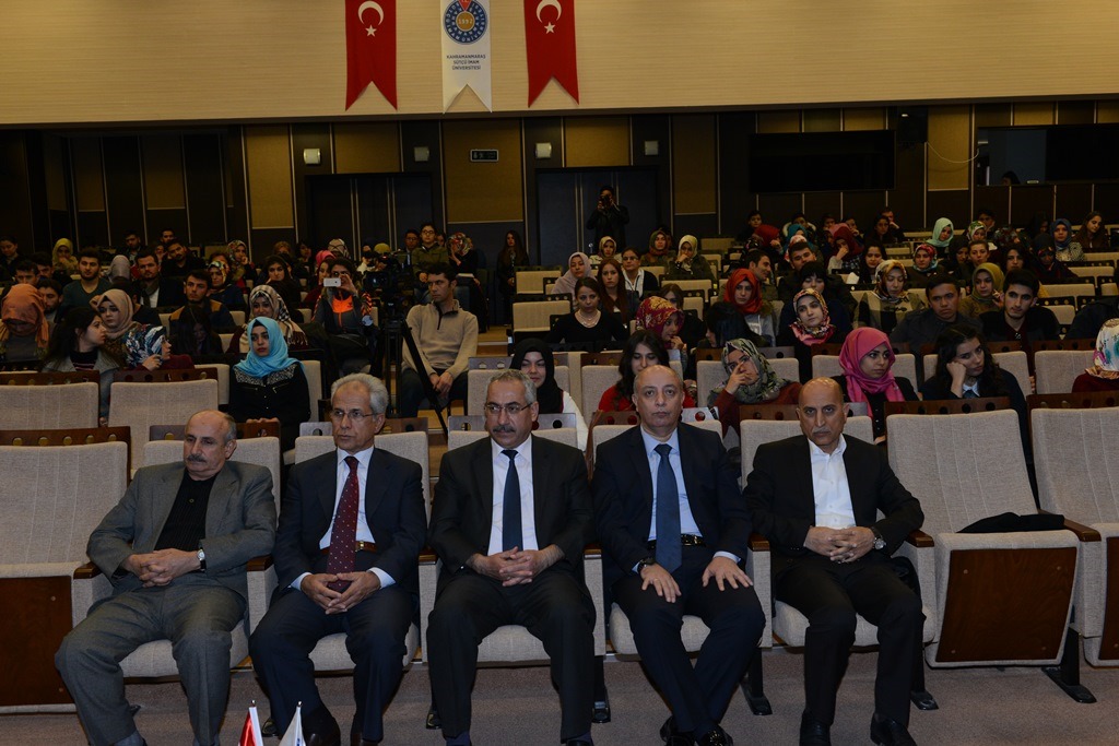 KSÜ Cahit Zarifoğlu Konferans Salonu’nda, KSÜ Dil ve Edebiyat Topluluğu tarafından düzenlenen ‘Mevlânâ’nın Hayatı ve Şiir’ temalı programa Rektör Prof. Dr. Durmuş Deveci, Rektör Yardımcısı Prof. Dr. İsmail Bakan, öğretim üyeleri ve öğrenciler katılırken, programın açılış konuşmasını topluluk danışmanı Yrd. Doç. Dr. İbrahim Erşahin yaptı. Erşahin, Mevlânâ’nın hayatı ve eserleri hakkında bilgiler verdi.
