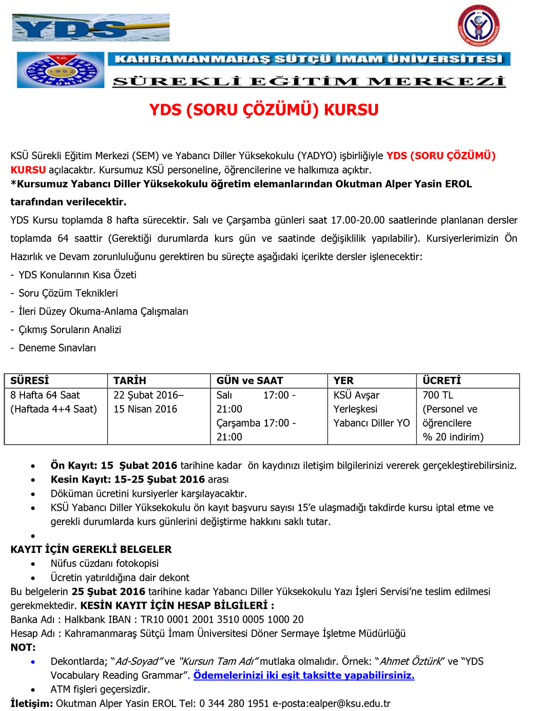 SEM YDS (SORU ÇÖZÜMÜ) KURSU