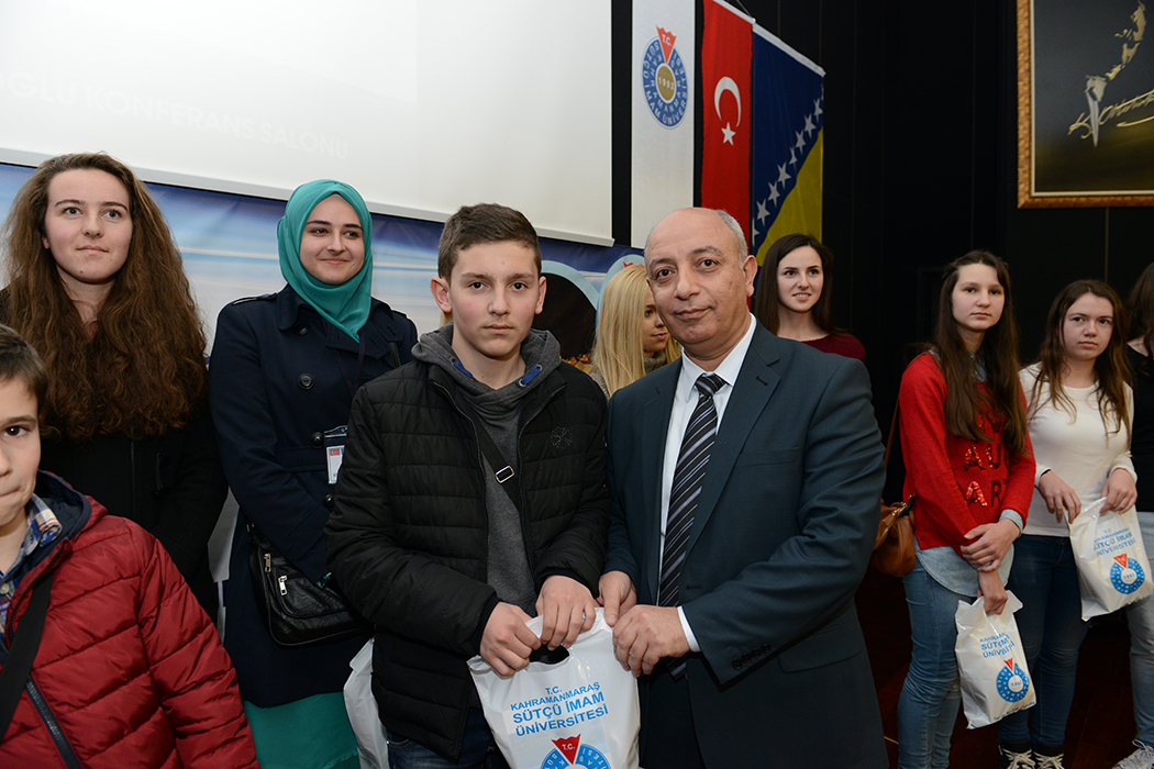 Cahit Zarifoğlu Konferans Salonu’nda düzenlenen programa, Bosna Hersek’ten gelen bir grup öğrenci ile birlikte Üniversitemiz Rektörü Prof. Dr. Durmuş Deveci, Rektör Yardımcıları Prof. Dr. Fatih Kıllı, Prof. Dr. Ramazan Güneşaçar, Prof. Dr. İsmail Bakan İktisadi ve İdari Bilimler Fakültesi öğretim görevlisi İsmail Göktürk, Bosna Gönül Elçisi Osman Nalbant ve çok sayıda öğrenci katıldı.