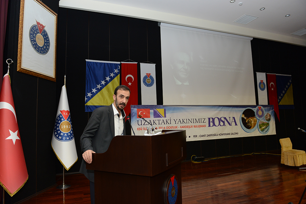 KSÜ ile Bosna 2016 Dostluk-Kardeşlik Buluşması programı açılış konuşmasını yapan Üniversitemiz Rektörü Prof. Dr. Durmuş Deveci, “Üniversite olarak elimizi Bosna’ya uzatıyoruz.” diyerek söze başlarken, 2016 yılını Bosna ile dostluk ve kardeşlik yılı ilan ettiklerini belirtti. Başta Bosna’daki üniversiteler olmak üzere diğer kurumlarla da işbirliği için kapıları açtıklarını belirten Deveci, Osmanlı’nın izinde oldukların söyleyerek Orta Asya’ya, Balkanlar’a sonra da Ortadoğu olmak üzere bu işbirliklerine devam edeceklerini söyledi. Bosna ile dostluk ve kardeşlik buluşması programına katılmak üzere Bosna’dan 30 kişilik bir grup öğrencinin de katıldığını belirten Deveci, “Azerbaycan ile yaptığımız işbirliği gibi Bosna ile de yapacağımız işbirliği ve kurduğumuz gönül köprüsü sadece bir yıl ile sınırlı değildir.” şeklinde konuştu.