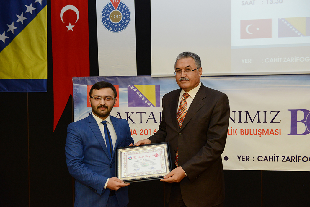Programda 2015 yılının Azerbaycan dostluk yılı ilan edilmesi münasebetiyle Azerbaycan Eğitim, Kültür ve Dayanışma Derneği tarafından Rektör Prof. Dr. Deveci ‘ye teşekkür belgesi takdim edilirken, program, Türk müziği dinletisi ve Bosnalı öğrencilere hediye verilmesi ile son buldu.