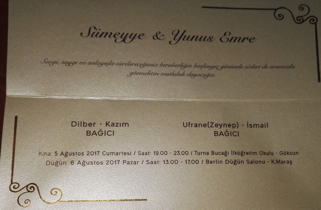 Üniversitemiz Göksun Meslek Yüksekokulu Ayniyat Saymanı Kazım BAĞICI'nın kızı 6 Ağustos 2017 Pazar günü saat: 13.00'te Kahramanmaraş Berlin Düğün Salonunda dünya evine girecektir. Genç çifti tebrik eder, mutluluklar dileriz.