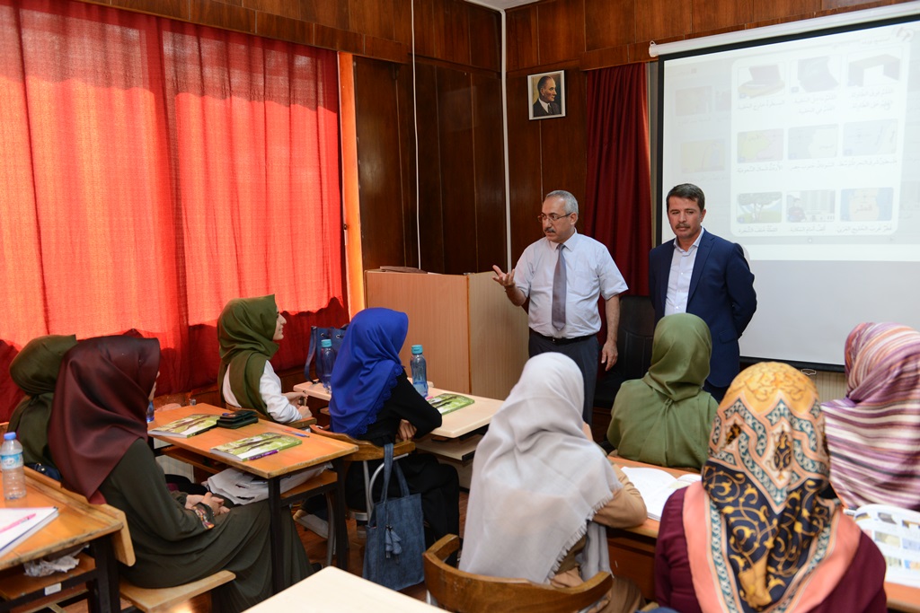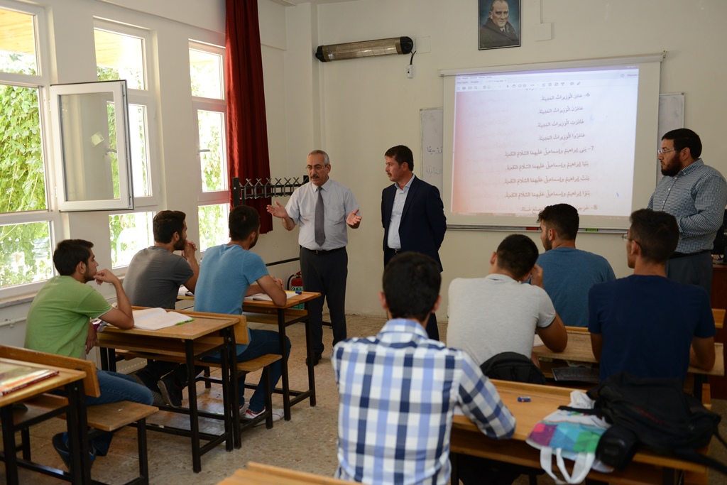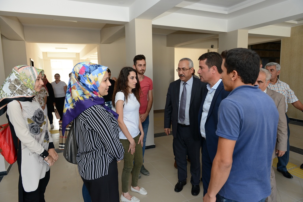 Rektör Deveci ve beraberindekiler, Türkoğlu’nda bu yıl Türkoğlu Meslek Yüksekokulu eski binasında eğitim vermeye başlayan İlahiyat Fakültesi Arapça İlahiyat Programını da ziyaret etti. Burada öğrencilerle sohbet eden Rektör Deveci Arapça İlahiyat Programının çok yakında kendi binasına kavuşacağının müjdesini verdi.