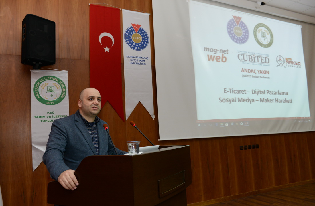 Kahramanmaraş Sütçü İmam Üniversitesi (KSÜ) Tarım ve İletişim Öğrenci Topluluğu tarafından “E-Ticaret, Dijital Pazarlama, Sosyal Medya, Maker Hareketi” konulu konferans düzenlendi.