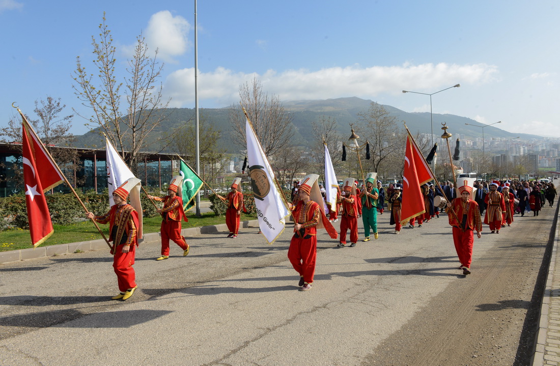 Nevruz Bayramı KSÜ nizamiyesinden mehter eşliğinde yapılan yürüyüşle başladı. Tarih boyunca kurduğumuz 16 büyük Türk devletinin bayraklarını taşıyan 16 atlının eşlik ettiği yürüyüşe KSÜ Rektörü Prof. Dr. Durmuş Deveci, Rektör Yardımcıları, Senato Üyeleri, personel ve öğrenciler katıldı. Kortej, okunan marşlar ve Afrin’de kahramanlık destanı yazan ordumuza destek sloganları eşliğinde kutlamaların yapıldığı Ziraat Fakültesi yanındaki tören alanına yürüdü.