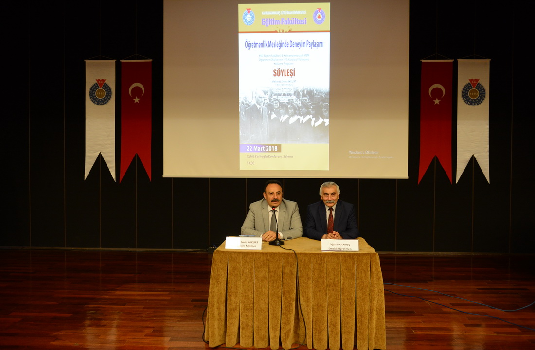 Açılış konuşmasının ardından Kahramanmaraş İl Milli Eğitim Müdürü Mehmet Emin Akkurt ve Emekli Sınıf Öğretmeni Oğuz Karakoç öğretmenlik yaşamları boyunca edindikleri deneyimleri genç öğretmen adaylarıyla paylaştılar.
