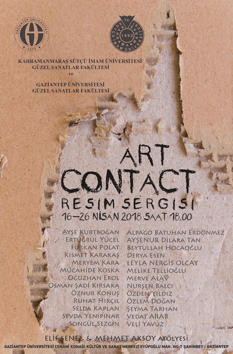 Gaziantep Üniversitesi (GAÜN) Güzel Sanatlar Fakültesi Resim Bölümü 3. Sınıf Öğrencileri ile Kahramanmaraş Sütçü İmam Üniversitesi Güzel Sanatlar Fakültesi Resim Bölümü 3. sınıf öğrencileri tarafından hazırlanan “Art Contact” adlı karma resim sergisi GAÜN Cenani Konağı Kültür ve Sanat Merkezi’nde açıldı.