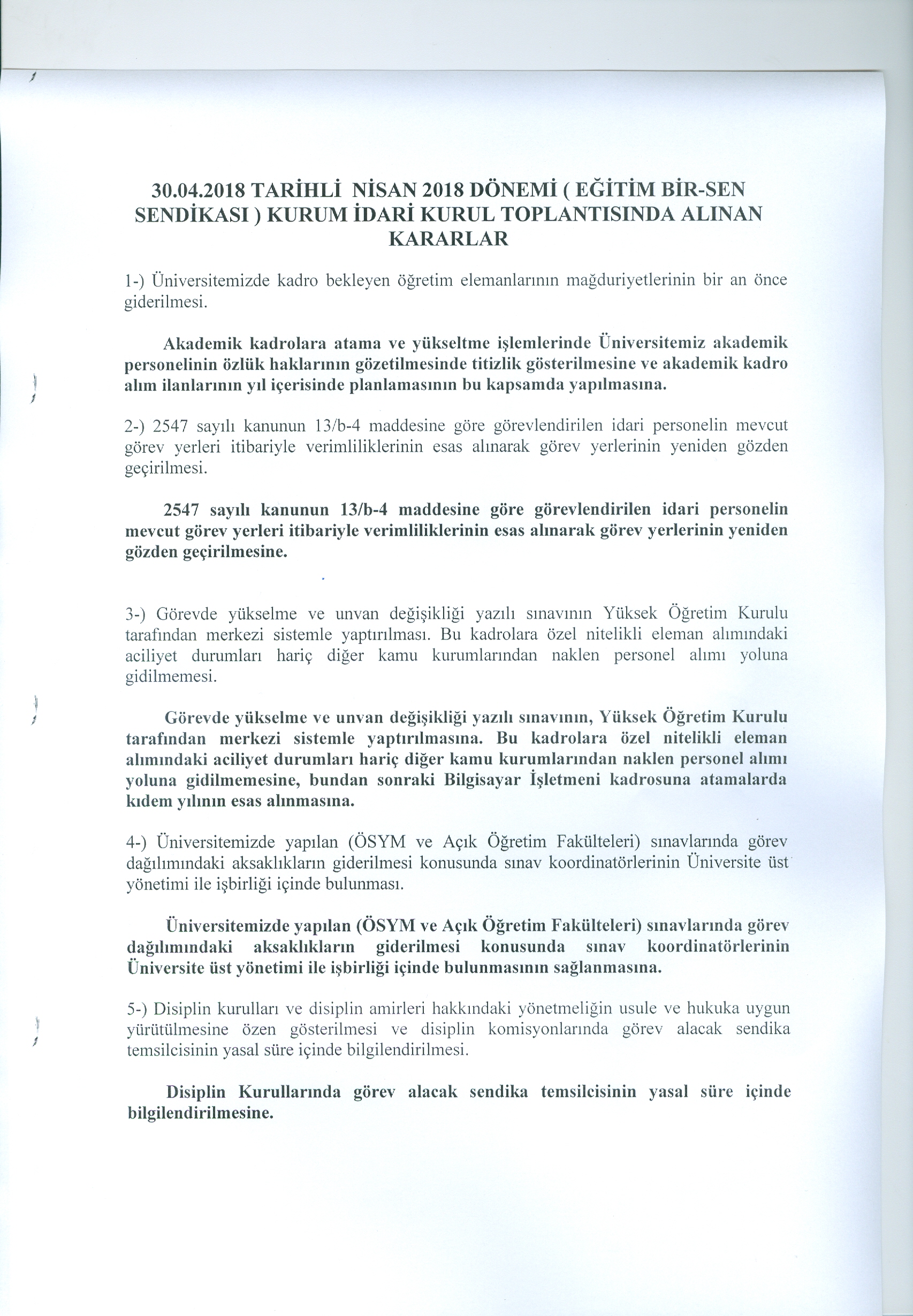 Nisan 2018 Kurum İdari Kurul Kararı