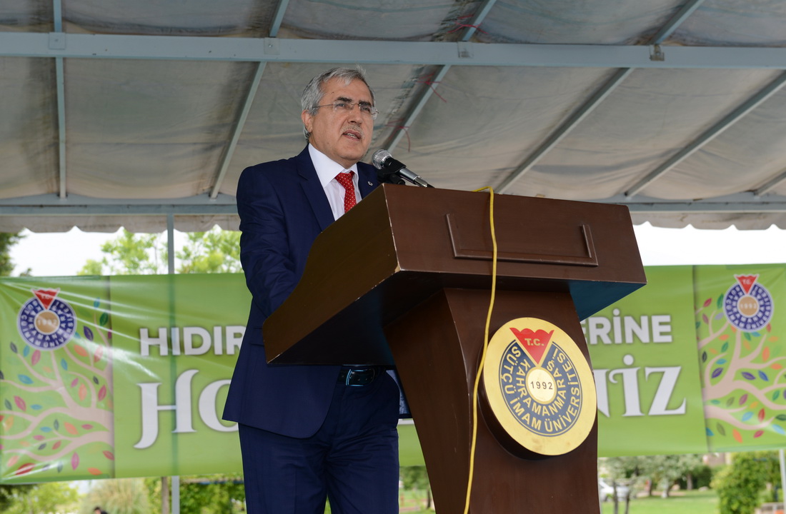 KSÜ Rektörlüğü, İlahiyat Fakültesi Dekanlığı, Onikişubat Belediye Başkanlığı ve İlahiyat Eğitimini Destekleme Derneği işbirliğiyle Eğitim Fakültesi otoparkında oluşturulan etkinlik alanında gerçekleştirilen Hıdırellez programının açılış konuşmasını Üniversitemiz Rektörü Prof. Dr. Niyazi Can yaptı.