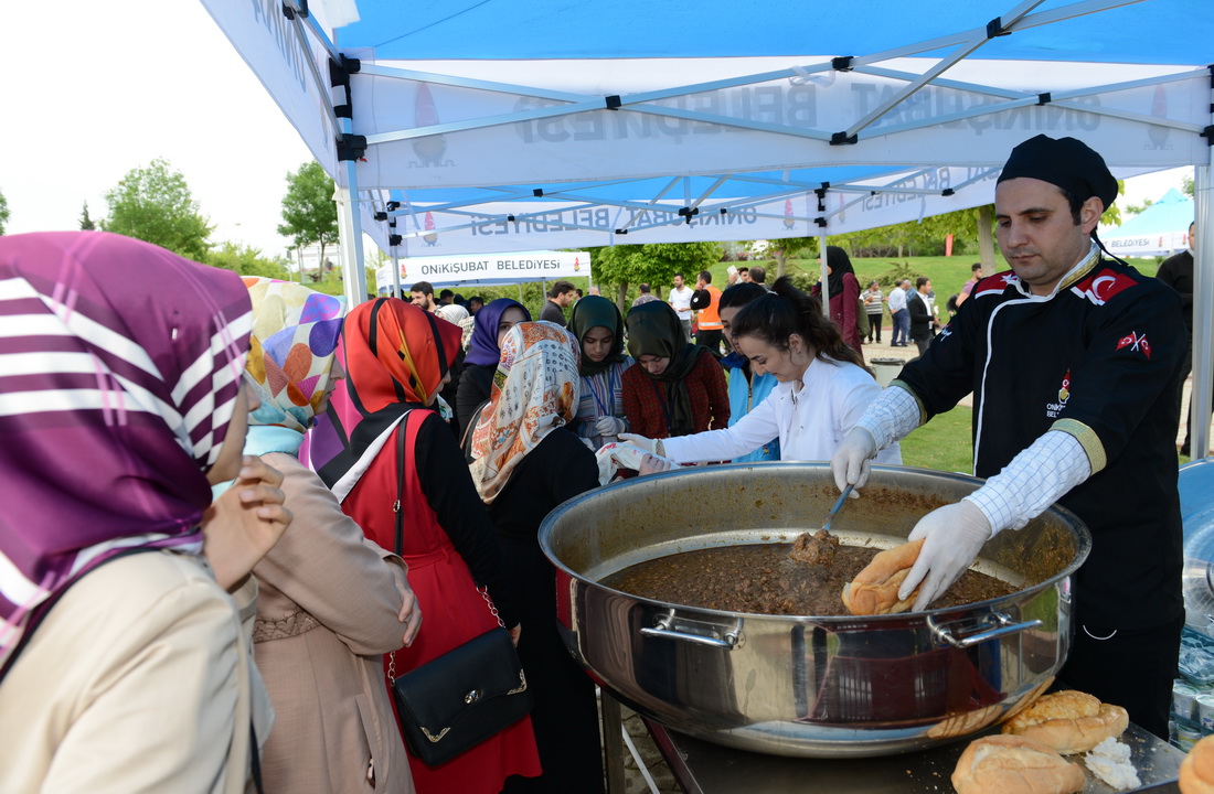 Etkinlikler kapsamında Onikişubat Belediyesi tarafından katılımcılara kavurma ve ayran ikramı yapıldı.