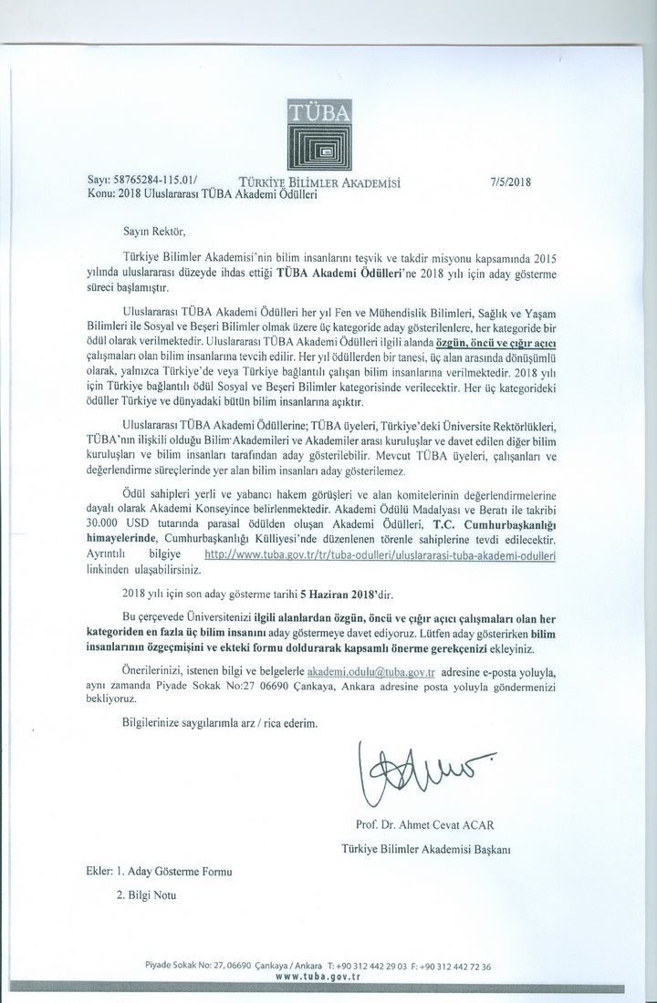 2018 Uluslararası TÜBA Akademi Ödülleri hakkında detaylı bilgi için tıklayınız.
