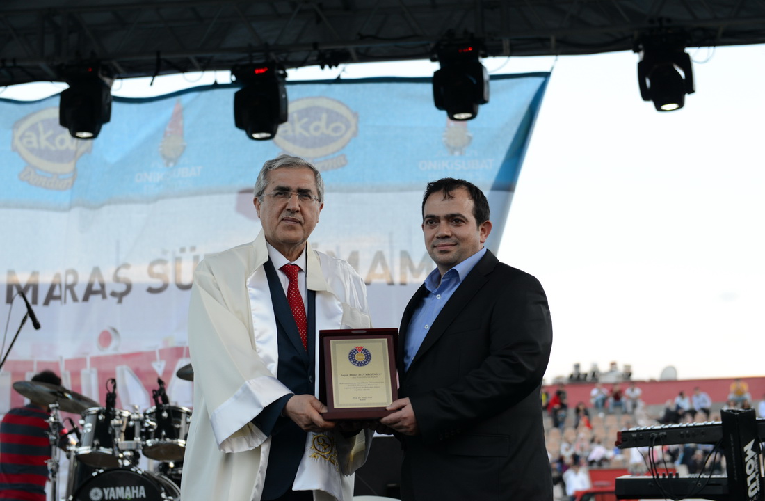 Dereceye girenlerin ödüllendirilmesi ve dönem birincisinin adının mezuniyet kütüğüne çakılmasının ardından mezuniyet töreni ve konserine destek sağlayan Onikişubat Belediye Başkanı Hanefi Mahçiçek ve Akdo Pastaneleri Yönetim Kurulu Başkanı Ahmet Davcarcıoğlu’na Üniversitemiz Rektörü Prof. Dr. Niyazi Can tarafından teşekkür plaketi takdim edildi. Mezuniyet töreninin giderlerini üstlenen Akdo Pastaneleri, öğrenciler ve ailelerine dondurma ikramında da bulundu.