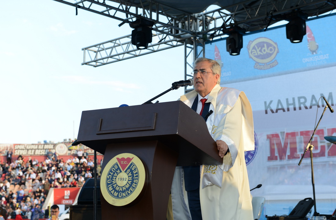Üniversitede yürütülen faaliyetlere destek olan başta Kahramanmaraş Valiliği olmak üzere bütün kurum ve kuruluşlara şükranlarını sunan Rektör Can, mezuniyet töreninin gerçekleştirilmesine katkı sunan Onikişubat Belediyesi adına Belediye Başkanı Sayın Hanefi Mahçiçek ve Akdo Pastaneleri Yönetim Kurulu Başkanı Sayın Ahmet Davarcıoğlu’na teşekkürlerini ifade etti.