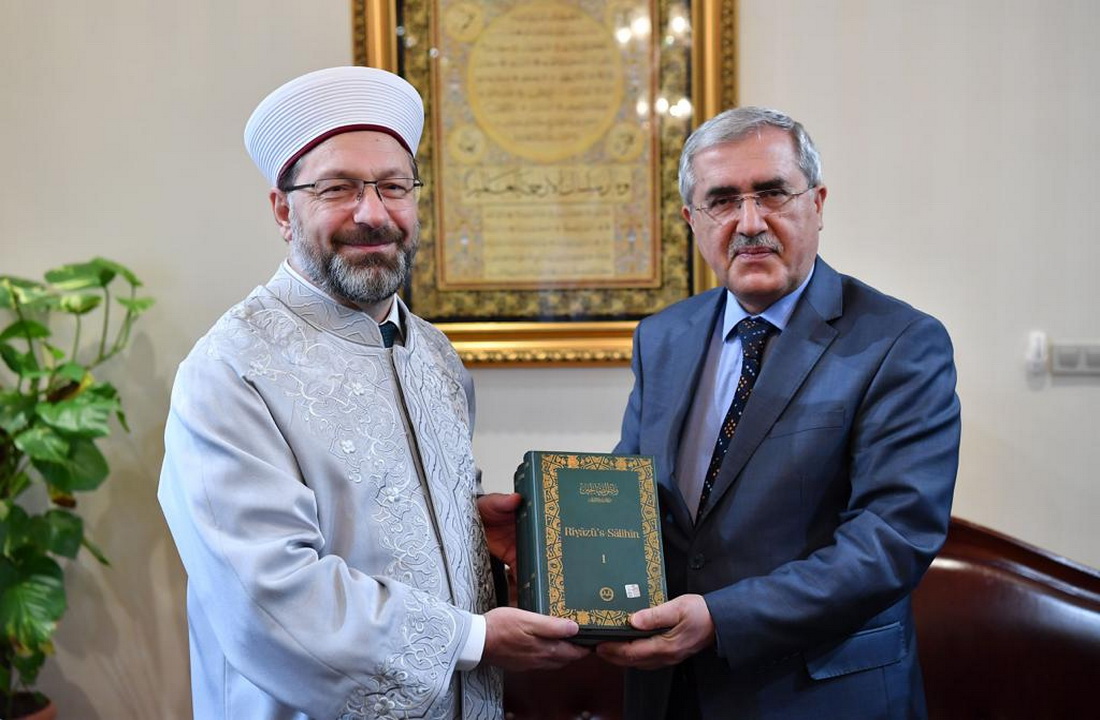 Ziyaretin anısına Başkan Prof. Dr. Ali Erbaş, Rektör Can’a İslam klasik eserlerinden biri olan hadis derlemesi Riyâzü’s-Sâlihîn isimli eseri hediye etti. Rektör Can ise Diyanet İşleri Başkanı Erbaş’a Kahramanmaraş’ın en önemli el sanatlarından olan ahşap oyma rahle hediye etti.