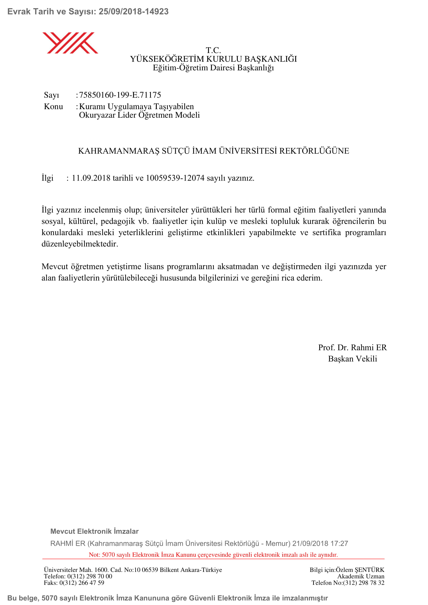 Rektörümüz Prof. Dr. Niyazi CAN ile Fakülte Dekanımız Prof. Dr. Nail YILDIRIM'ın önderliğinde hazırlanan ve Fakültemiz öğretim elemanlarının katkılarıyla geliştirilen "Kuramı Uygulamaya Taşıyabilen Okuryazar Lider Öğretmen Modeli" Yükseköğretim Kurulu Eğitim-Öğretim Dairesi Başkanlığınca onaylanarak 2018-2019 Eğitim-Öğretim Yılı itibariyle uygulamaya konmuştur. Emeği geçen tüm öğretim üyelerimizi tebrik eder, kendilerine yeni eğitim-öğretim döneminde başarılar dileriz.