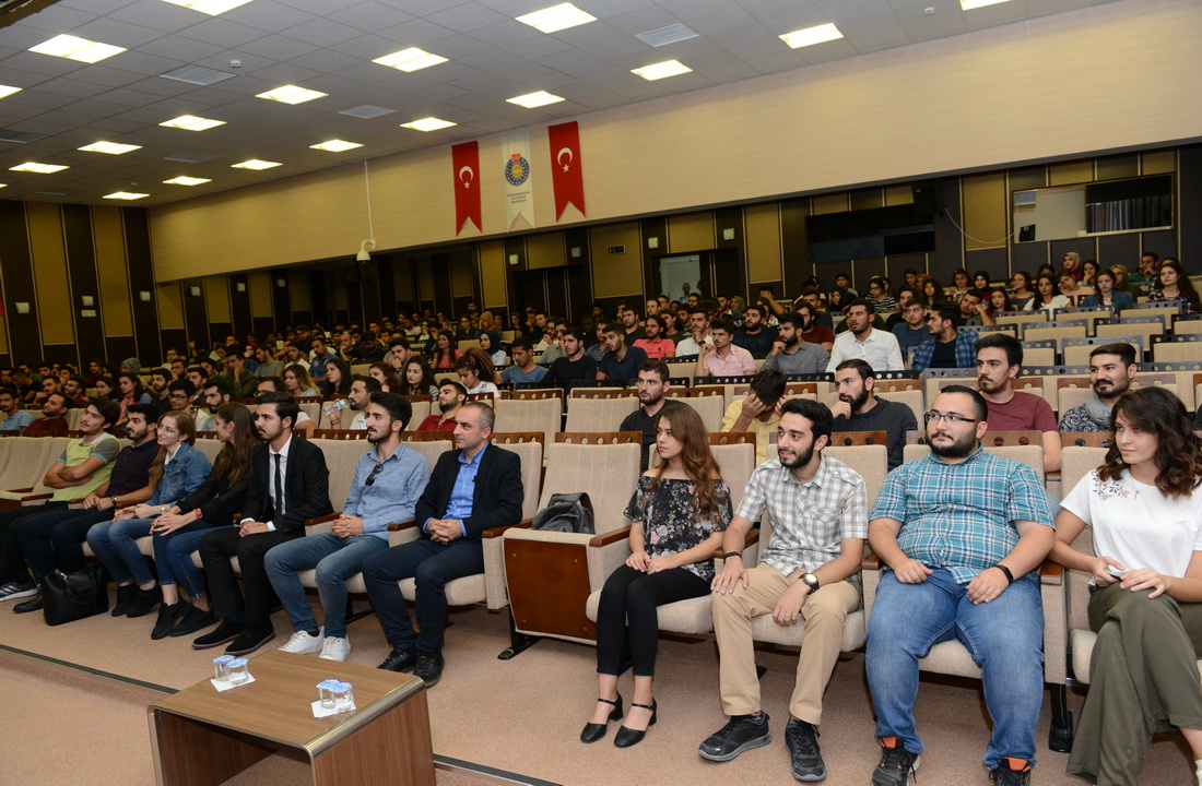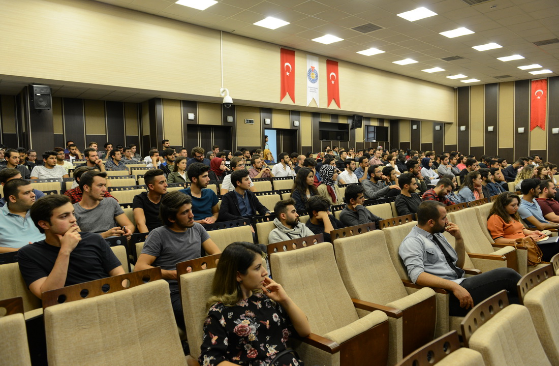 Bahtiyar Gençero konferans sunumunun son bölümünde öğrencilerin konuya ilişkin sorularını cevaplandırdı.