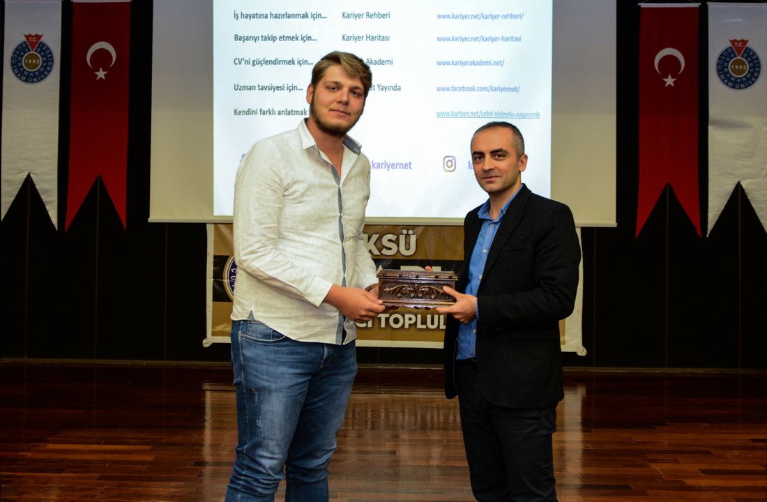 KSÜ Cahit Zarifoğlu Konferans Salonunda Gerçekleştirilen programa konuşmacı olarak Kariyer.net Etkinlik Yönetimi Takım Lideri Bahtiyar Gençero katıldı. Gençero katılımcılara özgeçmiş hazırlama, ön plana çıkma, kendini tanıma ve en iyi şekilde ifade etme, mülakat teknikleri konularında bilgiler verdi.