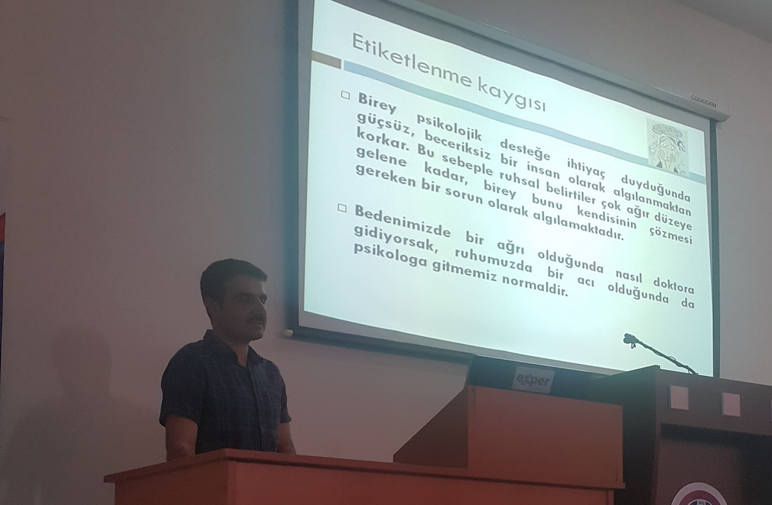 Uyum eğitimi kapsamında üniversiteye yeni başlayan öğrencilere lise ve üniversite arasındaki farklar ve karşılaşabilecekleri sorunlar, farklı şehirlerden gelen öğrencilerimizin yaşayabileceği sorunlar hakkında bilgiler verildi. Ruh sağlığı hakkında genel bilgiler verilerek, öğrencilerin hangi durumlarda psikologlara başvurabilecekleri, psikolojik rahatsızlıklara ilişkin yanlış inançlar, psikoloğa ihtiyaç duyan kişiyle psikolog arasındaki görülmeyen duvarlardan biri olan etiketlenme kaygısı, gizlilik ilkesinin psikologların en önemli etik kurallarından biri olduğu hakkında bilgiler verildi.