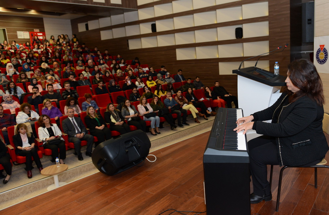 Piyano dinletisinin ardından Gaziantep Üniversitesi Sağlık Hizmetleri Meslek Yüksekokulu Müdürü Doç. Dr. Zeynep Güngörmüş ‘Sağlık Bilimlerinde Meslekler Arası Eğitim’ başlıklı konferans sunumunu gerçekleştirdi.