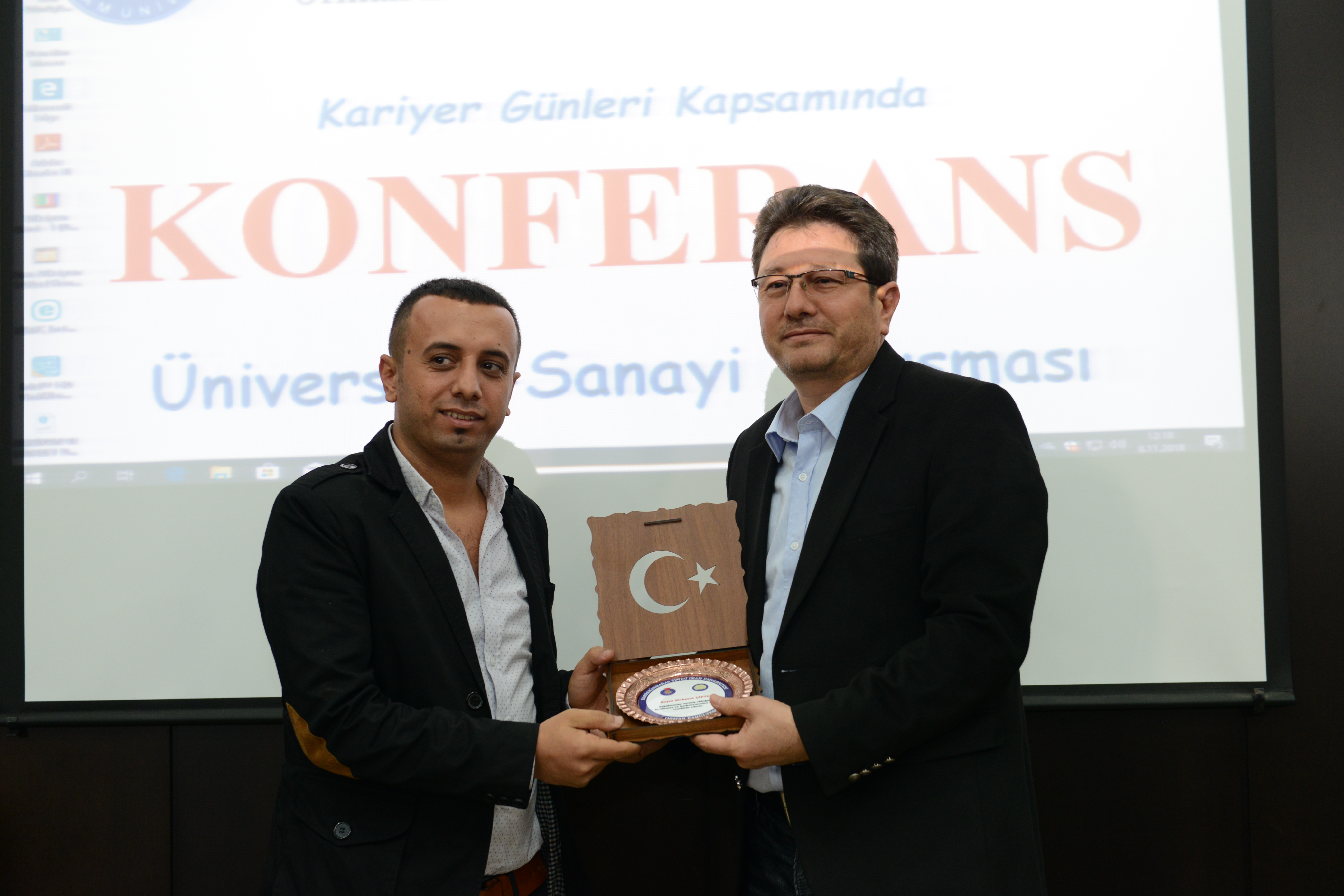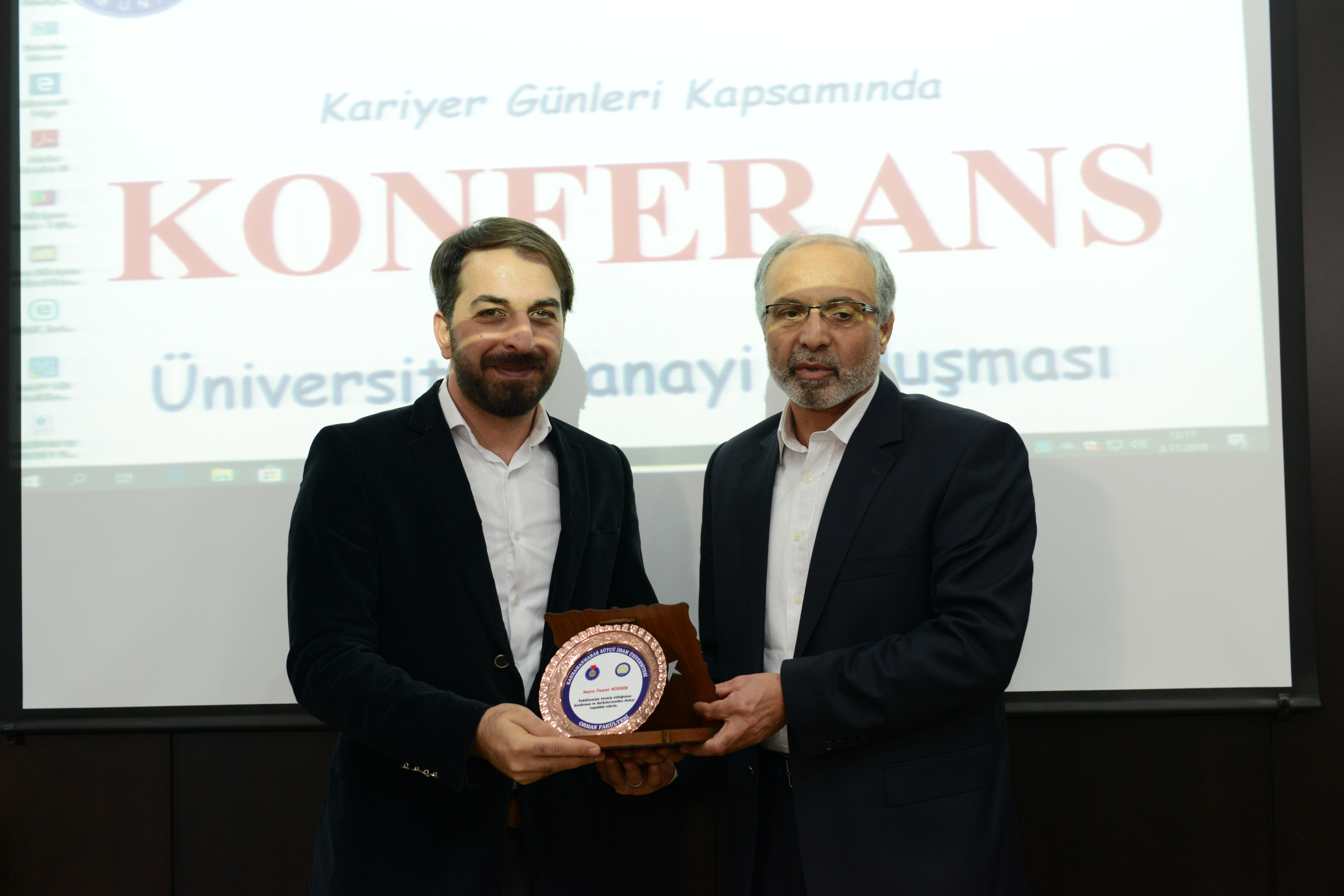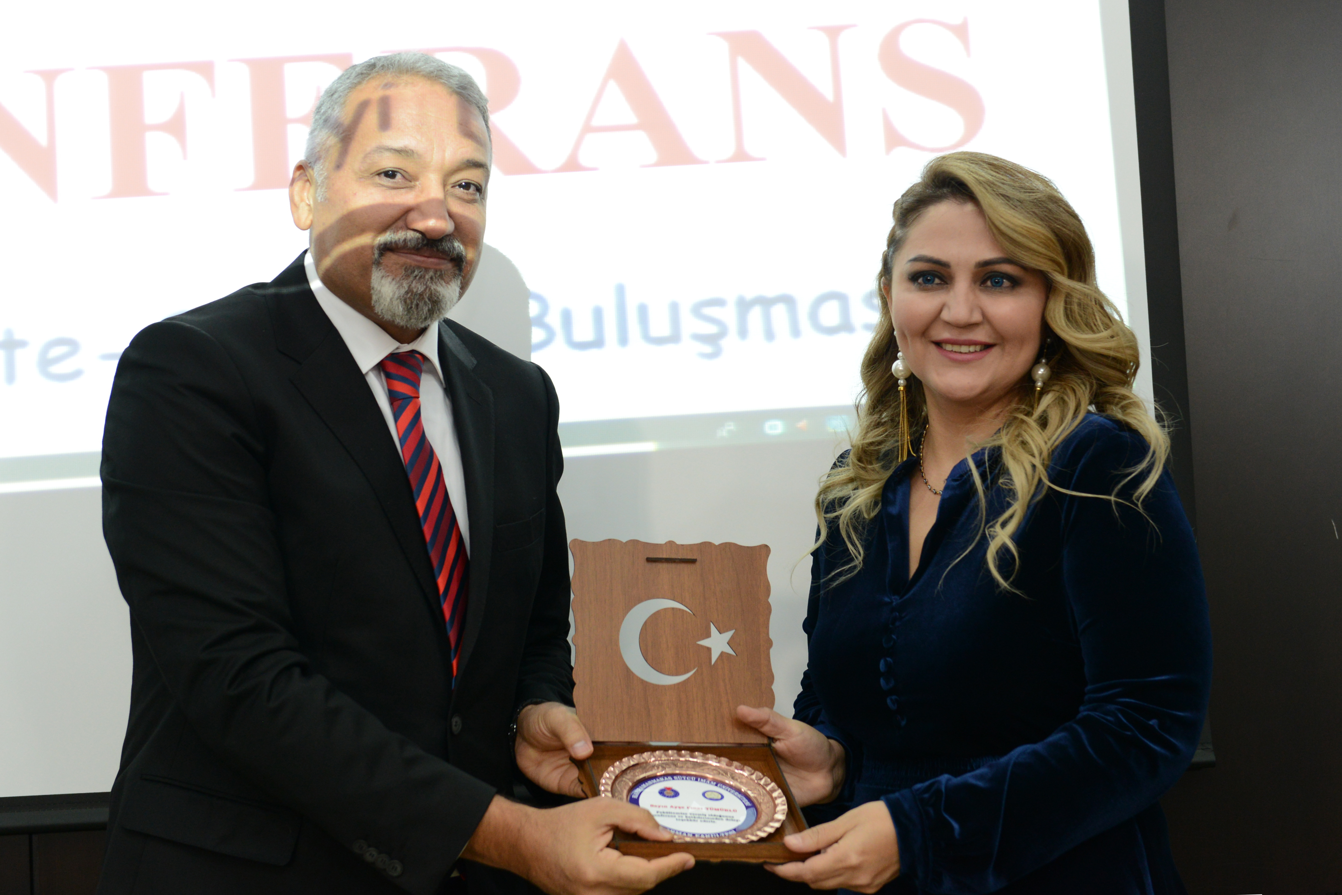 Konferansın sonunda konuşmacılara Dekan Mengeloğlu ve fakülte öğretim üyeleri tarafından teşekkür plaketi takdim edildi.